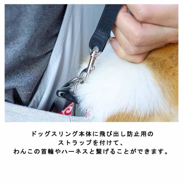 | 犬・猫用 スリングバッグ。 飛び出し防止ストラップがついた、飛び出し防止設計のペットスリング。 ドッグスリング本体に飛び出し防止用のストラップを付けて、わんこの首輪やハーネスと繋げることができます。 幅広のショルダーストラップで長時間使用しても疲れにくい。 スマホ・ゴミ袋・ペットフードなどを入れられるポケット付きで、散歩のときに便利です。 使わないときは小さく畳んで、お手持ちのバッグに収納することができます。 お散歩・お出かけ・旅行に、いつでもどこでも一緒に快適にお出かけできるペットバッグ!猫、ウサギ、小型犬、小動物に適しています。 | |
