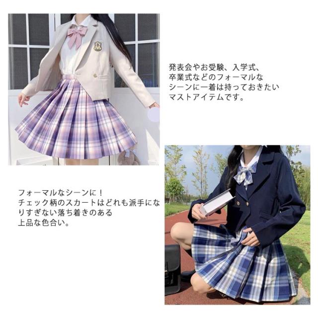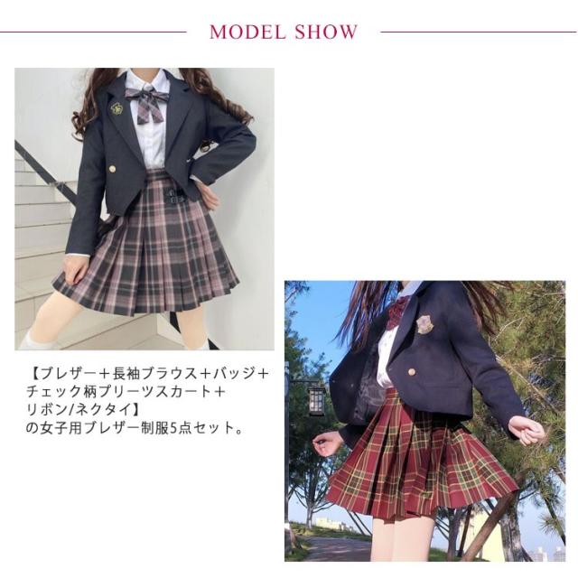 | 【ブレザー+長袖ブラウス+バッジ+チェック柄プリーツスカート+リボン/ネクタイ】の女子用ブレザー制服5点セット。 フォーマルなシーンに!チェック柄のスカートはどれも派手になりすぎない落ち着きのある上品な色合い。発表会やお受験、入学式、卒業式などのフォーマルなシーンに一着は持っておきたいマストアイテムです。 リボンとチェックスカートがとってもキュート。お子様の好みに合わせてお選びください。 入学式や卒業式、結婚式にはもちろん、 モノトーンでまとめているので、法事やお受験といったシーンにも着回せます。ジャケットの下にブラウスをお召頂ければ一年中着回せる万能アイテムです。 | |