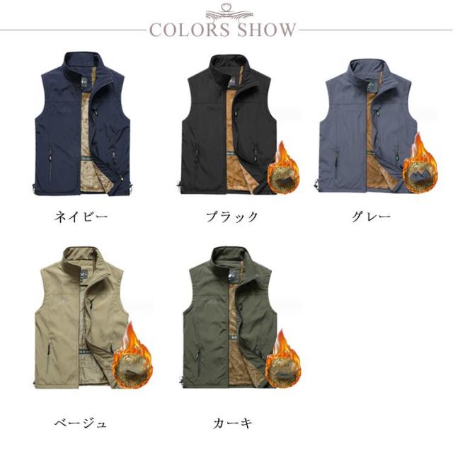 ナイロンベスト メンズ カメラマン ベスト お釣りベスト 裏起毛 ウィンドブレーカー コート カメラマン ジャケット 裏ボア スポーツベスト ゴルフウェア ミリタリーベスト カジュアル アウトドア イベント チームウエア 秋冬 前開き