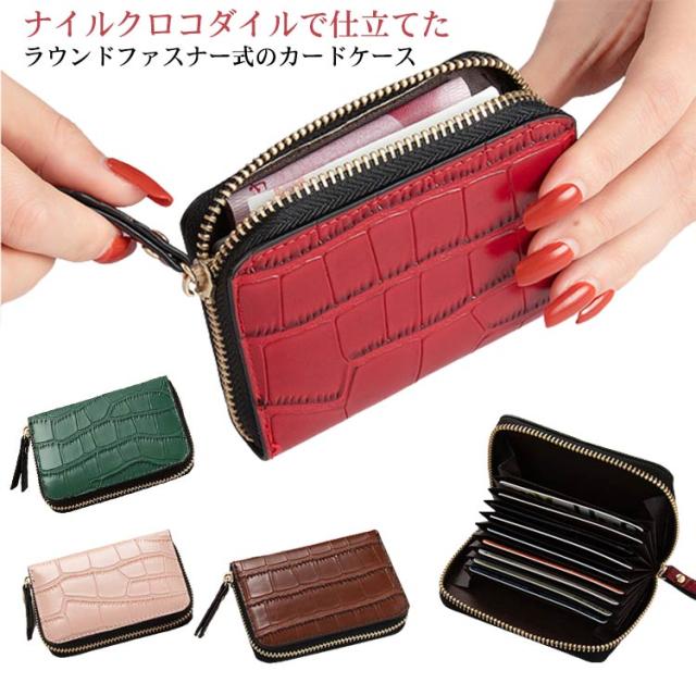 送料無料 カードケース クロコダイル カード入れ 小銭入れ ミニ財布 コンパクト 大容量 レディース メンズ ミニウォレット スキミング防止 じゃばら 磁気防止 キャッシュレス クレジットカード ICカード カードホルダー ラウンドファスナー