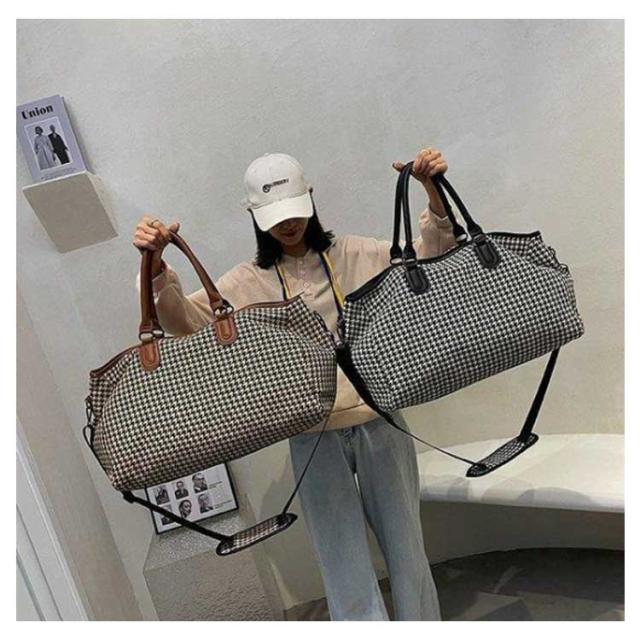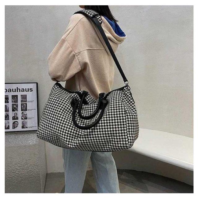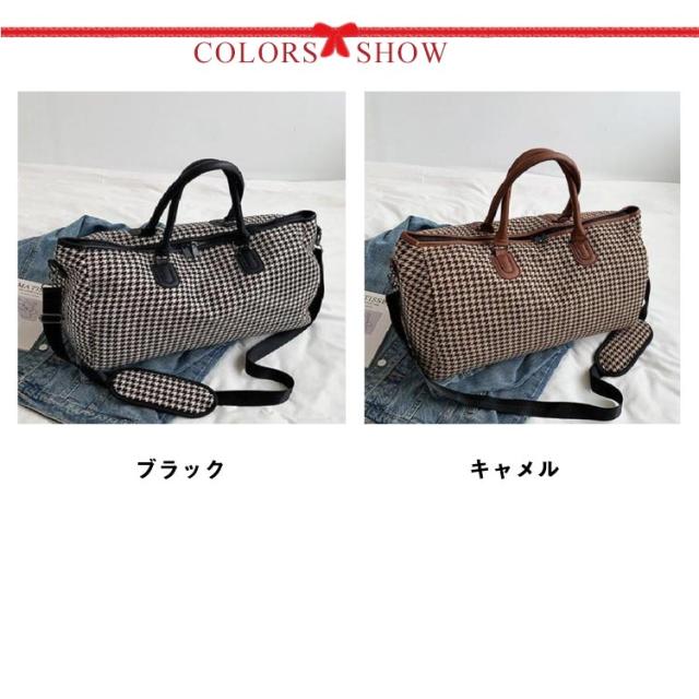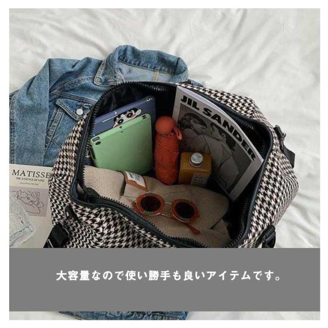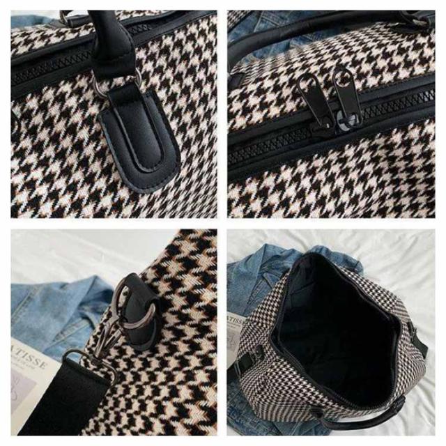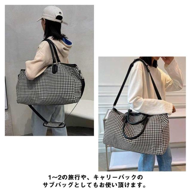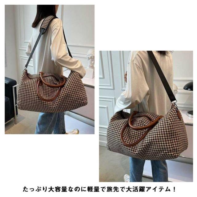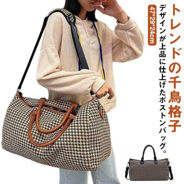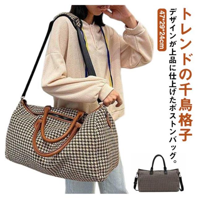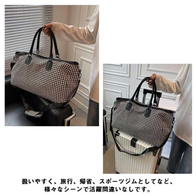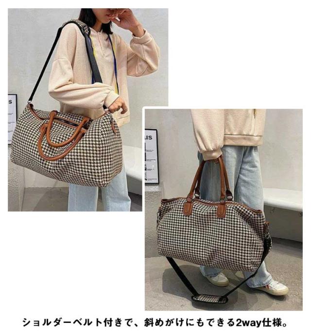 ボストンバッグ レディース 2way ショルダー 斜め掛け 修学旅行 ジム キャリーオンバッグ 大容量 旅行カバン トラベルバッグ 機内持ち込み 1泊 2泊 3泊 出張 鞄 斜めがけ 千鳥格子 おしゃれ 軽量 シンプル 男女兼用