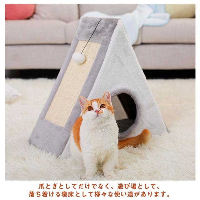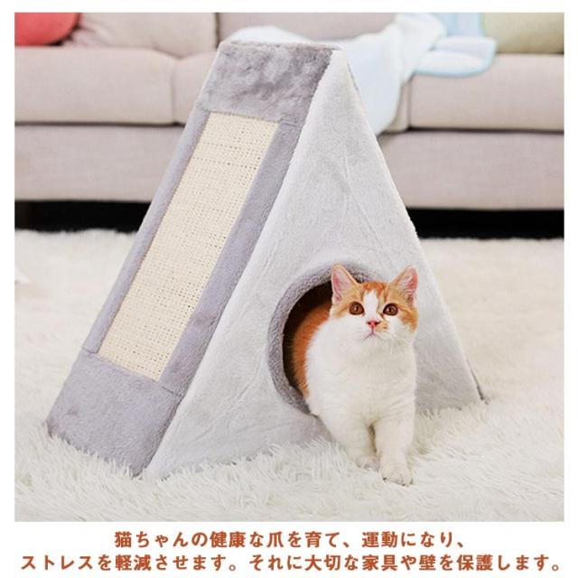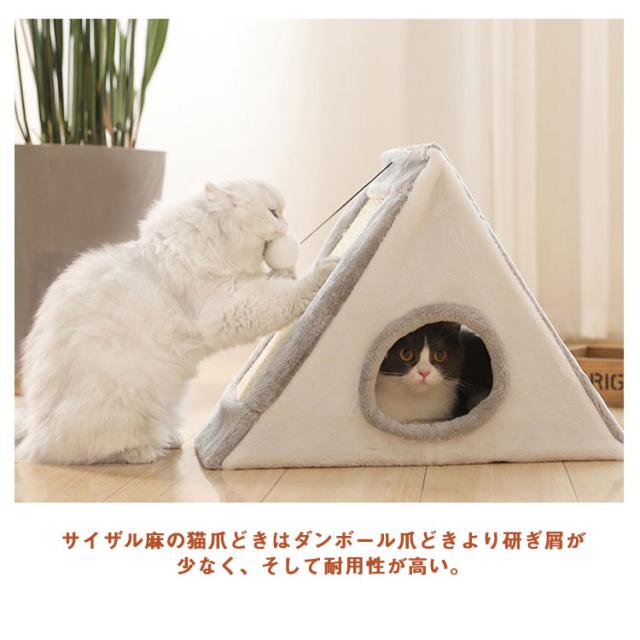 猫用爪とぎ 猫ハウス 猫タワー 折りたたみ キャットハウス キャットタワー サイザル麻 爪とぎ兼ベッド ドーム おしゃれ 猫 ベッド オールシーズン テント 通年 つめとぎ ストレス解消 おもちゃ 三角形 猫用品