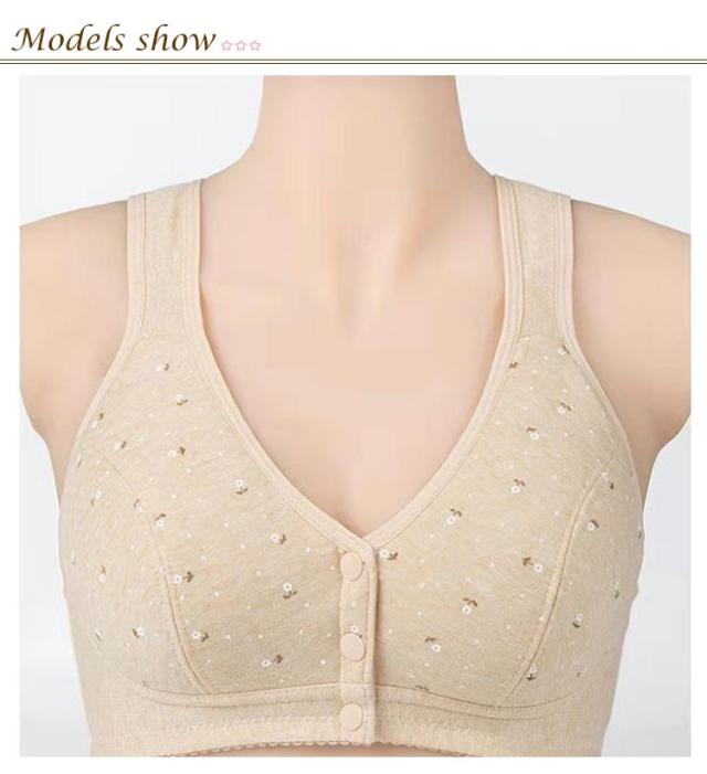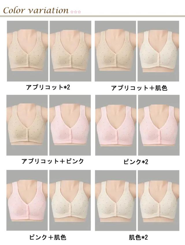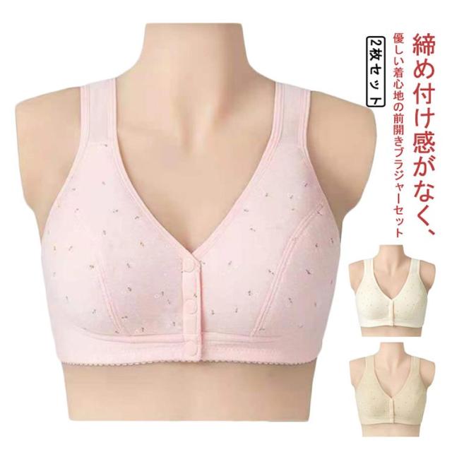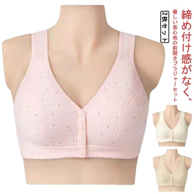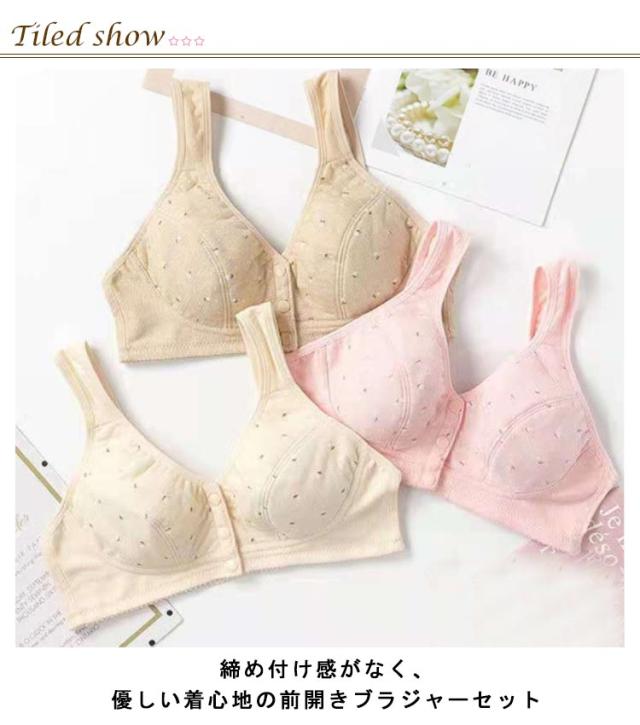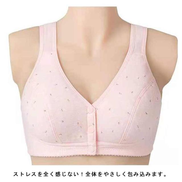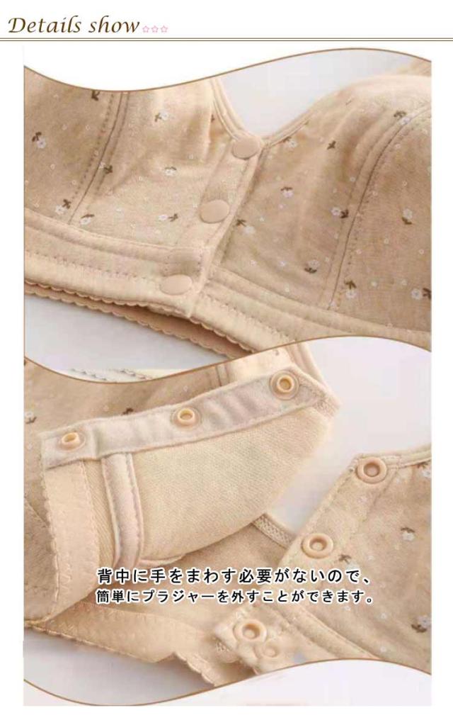| 締め付け感がなく、優しい着心地の前開きブラジャーセット コットン素材を使用しているので、着心地がよくお肌にもやさしい♪ ストレスを全く感じない!全体をやさしく包み込みます。 背中に手をまわす必要がないので、簡単にプラジャーを外すことができます。 幅広ストラップ、肩が痛くなりにくい。 3段式の前開きボタンで安定感も抜群!着脱も楽! ナイトブラ、授乳ブラ、入院時のブラジャーとしても、幅広いシーンで大活躍。 | |