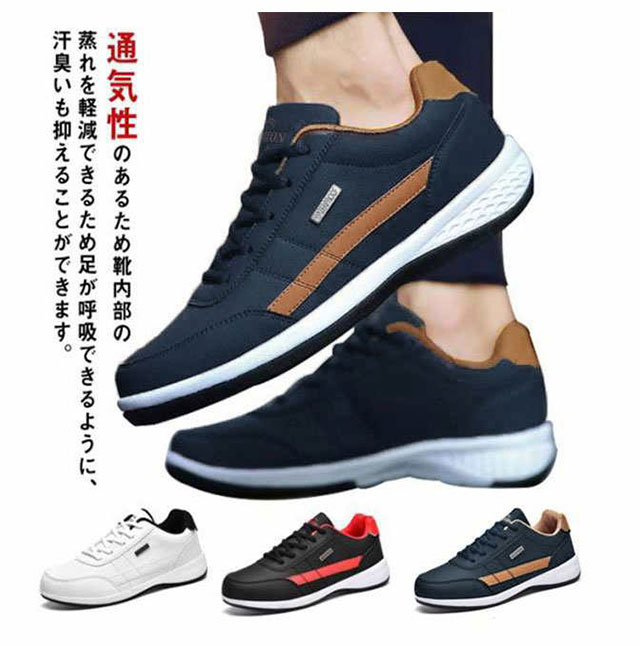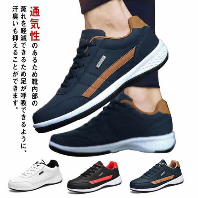 スニーカー メンズ 防水 カジュアルシューズ カジュアルスニーカー レースアップ 幅広 ウォーキングシューズ 軽量 厚底 運動靴 紳士靴 合皮 撥水 ビジネス ランニング ゴルフ 歩きやすい 通勤 通学 中学生 24-29cm