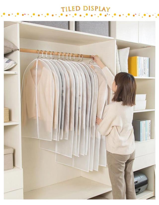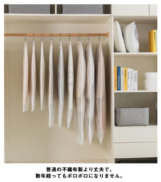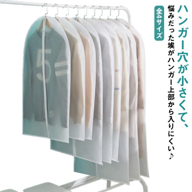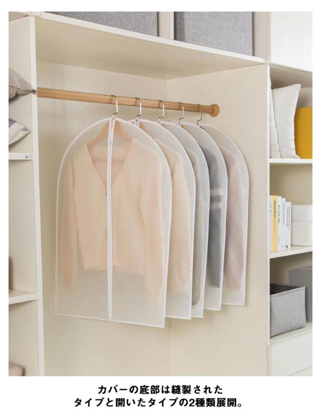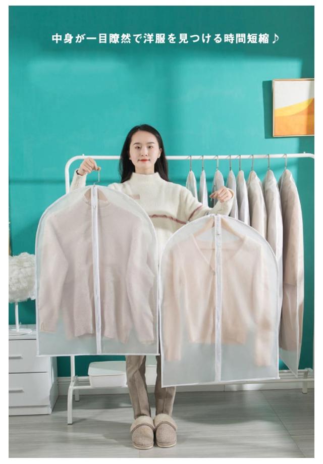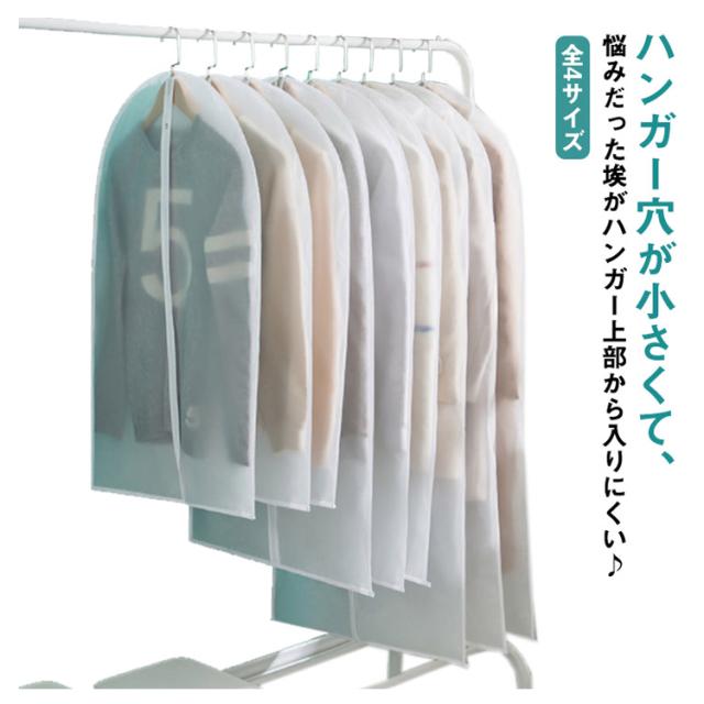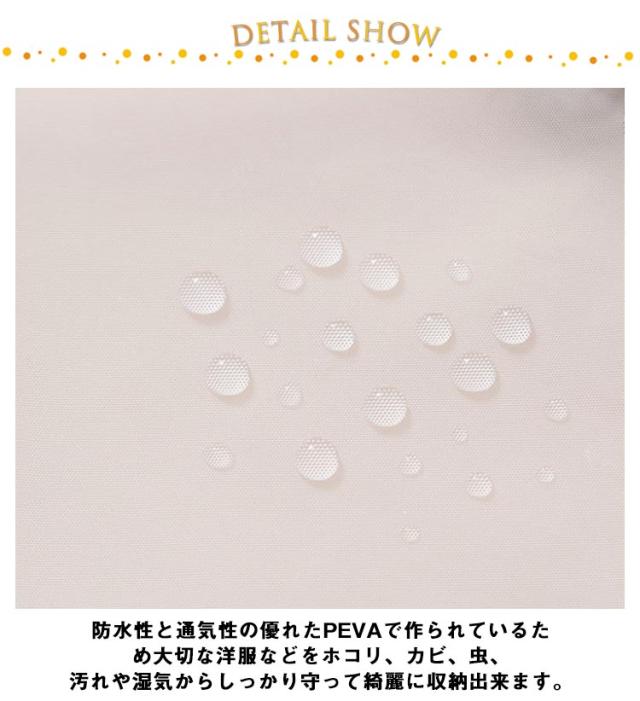 | ハンガー穴が小さくて、悩みだった埃がハンガー上部から入りにくい♪ 上部のハンガーフックを通す穴はホコリが入りにくいように小さくなって、いつもの悩みを解消♪ 中身が一目瞭然で洋服を見つける時間短縮♪ 防水性と通気性の優れたPEVAで作られているため大切な洋服などをホコリ、カビ、虫、汚れや湿気からしっかり守って綺麗に収納出来ます。 洗濯できる生地なので、カバーが汚れた場合、やさしく手洗いしたり、濡れた布で拭きすぐに綺麗になりますので、長期間繰り返して使用可能です。 普通の不織布製より丈夫で、数年経ってもボロボロになりません。 カバーの底部は縫製されたタイプと開いたタイプの2種類展開。 | |