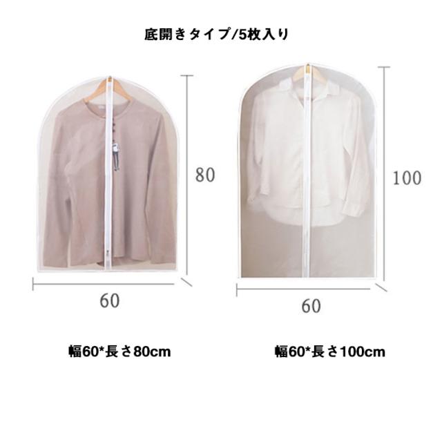 全4サイズ 洋服カバー 5枚入り センターファスナーカバー 半身透明 衣装カバー 衣類カバー 衣類収納 クローゼット収納 送料無料 全面カバー ほこり除け 通気性 防湿 スーツカバー コートカバー 衣類ダストカバー 衣類収納袋