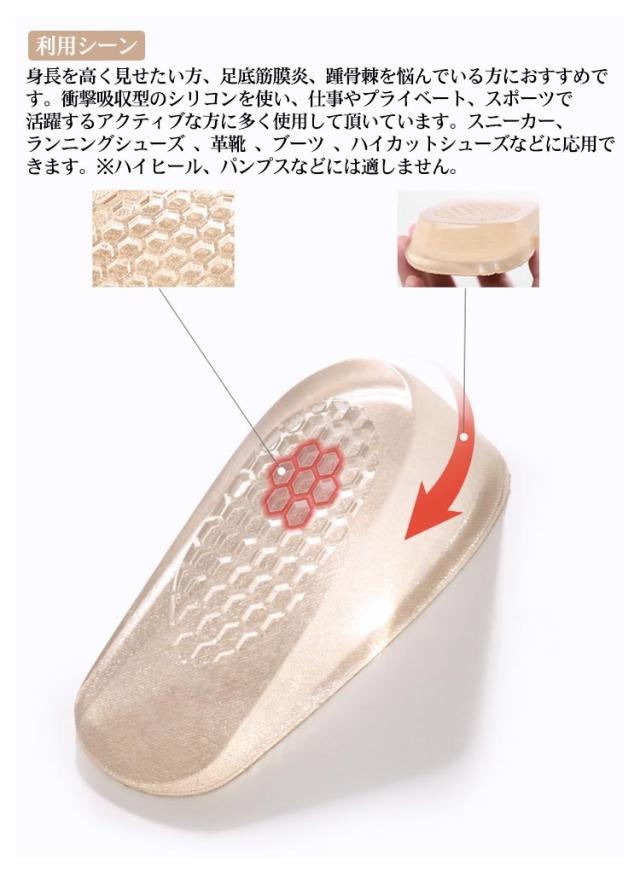 インソール シークレット インヒール 身長アップ 中敷き かかとアップ シリコン ヒールパッド かかとクッション 踵 サポーター 秘密身長UP 1.5-3.5cm 美脚効果 高弾力 衝撃吸収 滑り止め 男女兼用 半敷タイプ 送料無料