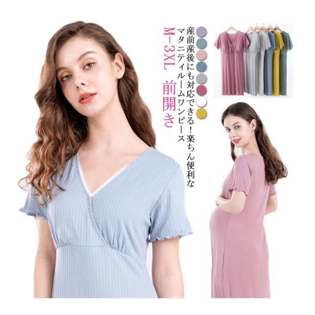 ルームワンピース マタニティ 授乳ワンピース パジャマ ルームウェア ワンピース 半袖 入院着 無地 おしゃれ シンプル 前開き 産前 産後 妊婦服 妊娠 授乳服 春 夏 秋 産院着 可愛い おしゃれ 人気 大きいサイズ 出産祝い プレゼント 送料無料