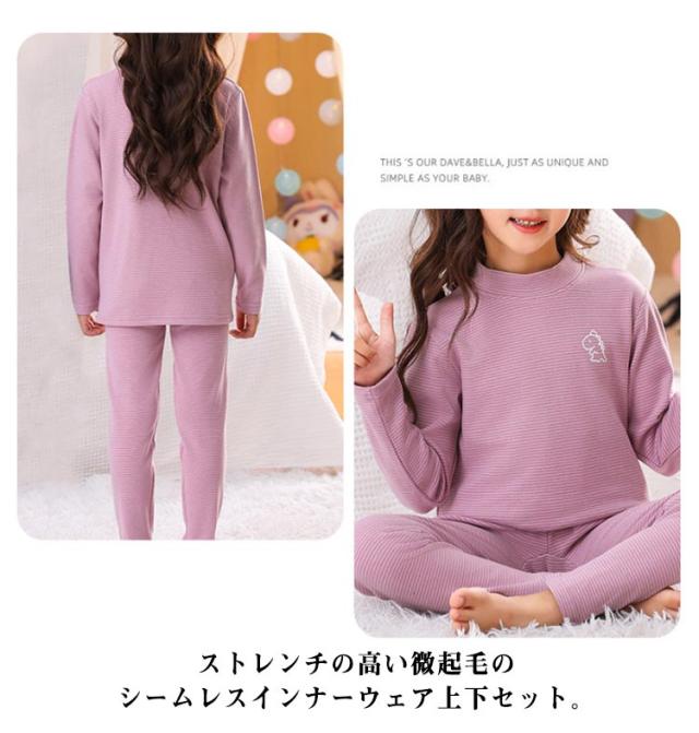 ハイネック ヒートテック キッズ 子供服 肌着 インナーウェア 上下セット 裏起毛 微起毛 あったかインナー 女の子 男の子 長袖 インナー tシャツ ロンt Uネック 丸首 長ズボン 発熱 保温 防寒 シムレース ストレッチ 春 秋冬 アンダーシャツ ルームウェア