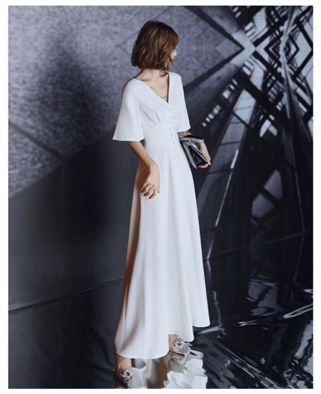 | ・上品に揺れる美シルエットのロングウェディングドレス。 ・首をすっきりと長く見せてくれるVネック。シンプルなのでどんなネックレスも合わせやすい♪ ・ウエスト部分はハイウエストで切替、目線を飾りボタンに合わせるためさらに、足長効果もあります。 ・ウエストが絞られ、裾に向けて花びらのようにふわっと広がるスカートのシルエットが上品。 ・メリハリのある美シルエットは着やせ効果も抜群です。 ・結婚式・二次会などの華やかなシーンはもちろん、お呼ばれ・食事会など、セミフォーマルシーンでも大活躍♪ | |