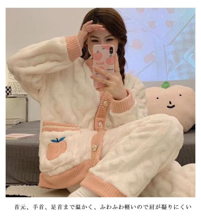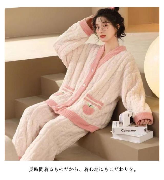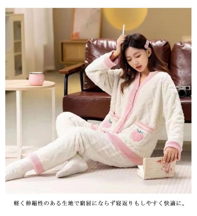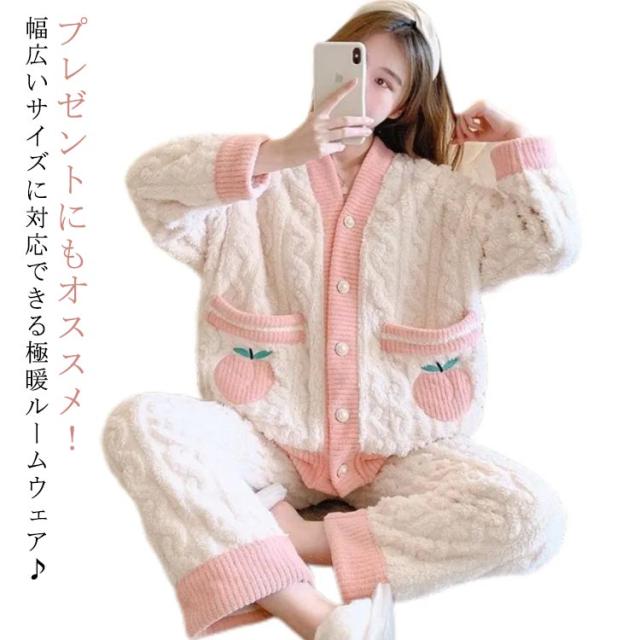 ルームウェア レディース 上下セット 冬 長袖 可愛い もこもこ 暖かい 冬 パジャマ 前開き ボア 防寒 保温 トップス パンツ 着る毛布 あったかい 部屋着 ストレッチ 無地 ゆったり かわいい 大きいサイズ ふわふわ 極暖 ギフト プレゼント 送料無料