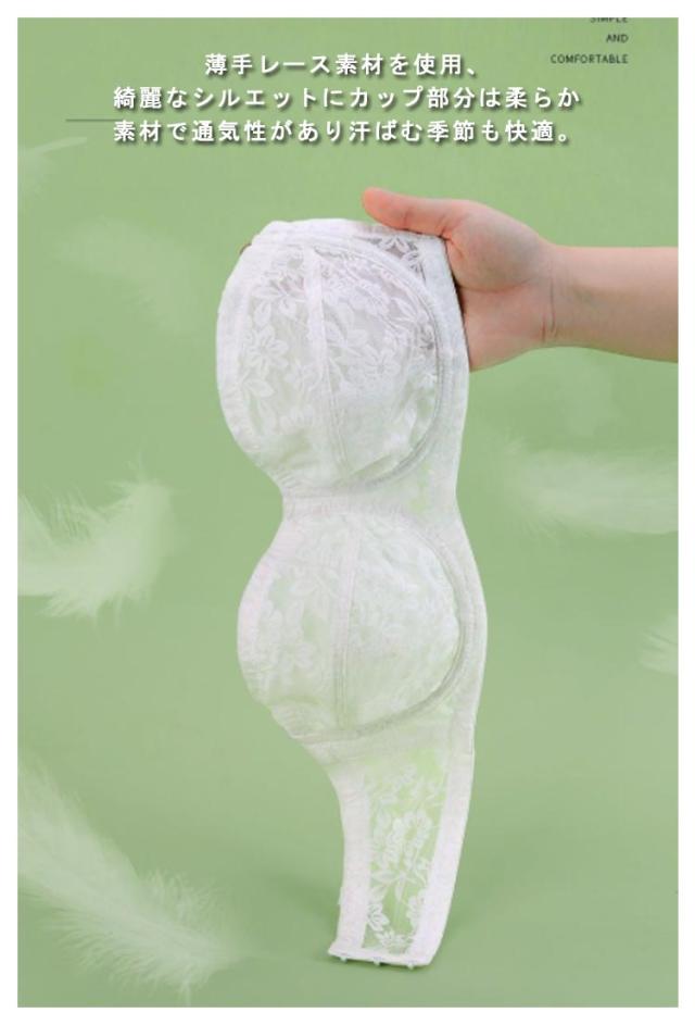 胸を小さく見える ブラジャー 単品 ストラップレス ブラ ワイヤー入り 大きいサイズ ずれない ブラジャー ブラ 紐なしブラ 夏 チューブトップ レースブラ 薄手 下着 脇肉スッキリ 垂れ防止 結婚式 ドレス ダンス 肩紐付き