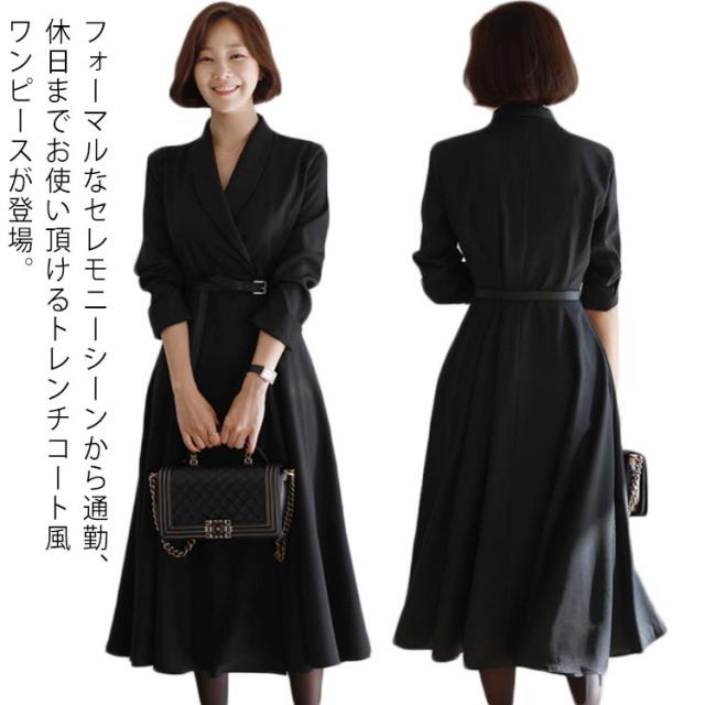 送料無料 ワンピーススーツ トレンチコート風 レディース コート ロングコート フォーマルスーツ 服 スーツ フォーマルワンピース ロングワンピース ブラック 黒 入学式 卒業式 母 ママ 参観日 発表会 入園式 卒園式 お宮参り べルト付き ママスーツ