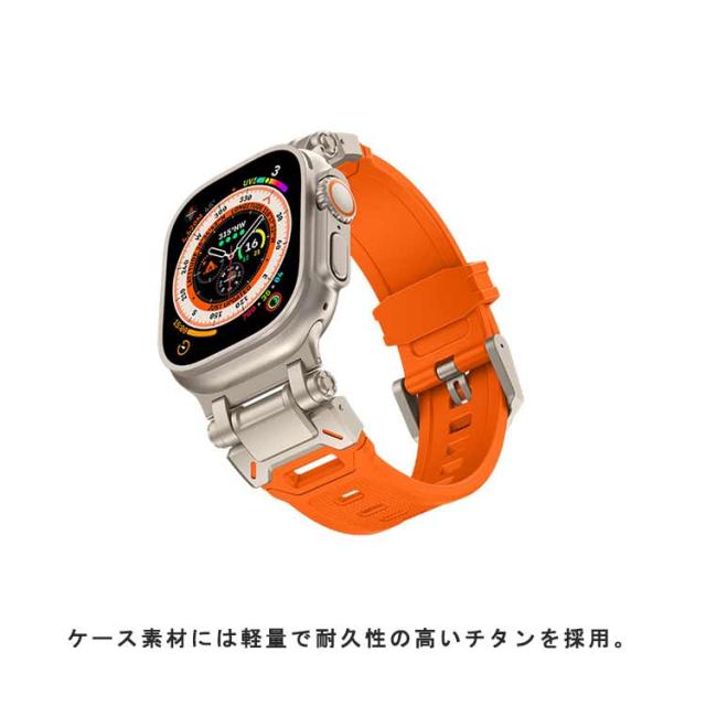 | カジュアルなアップルウォッチが上品で高級感のある腕時計のようになるケースベルトです。 ケース素材には軽量で耐久性の高いチタンを採用。 ベルトは水に強いラバータイプです。濡れたら乾いた布でさっと拭くだけ。汚れても水拭きできるので清潔感が保てます。あなたのアップルウォッチをワンランク上に。 付属のラバーケースをアップルウォッチにつけて、ケースにはめた後、ネジで留めるだけの簡単装着です。 | |
