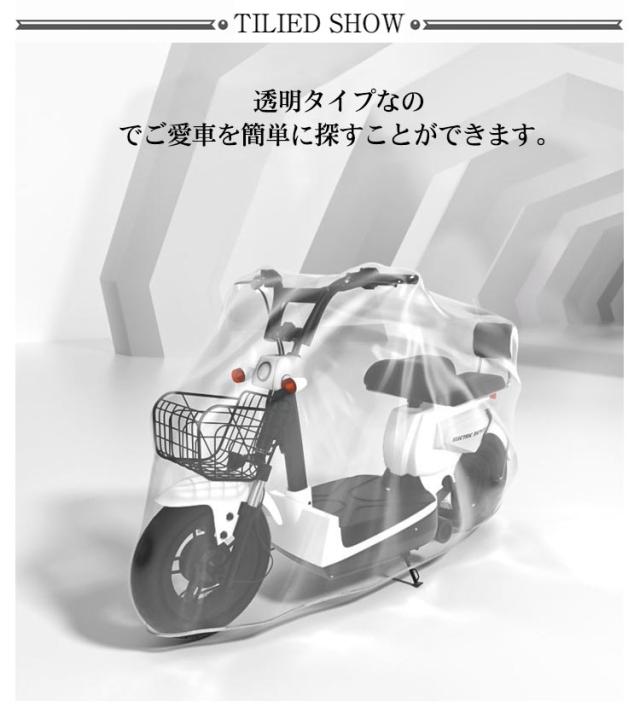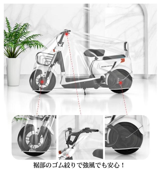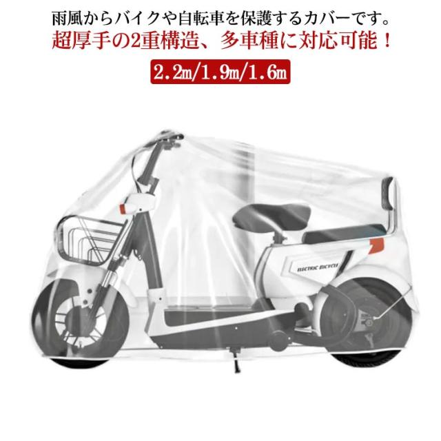 バイクカバー 2.2m/1.9m/1.6m スクーターカバー レインカバー ママチャリ 子供乗せ 自転車カバー 大型 厚手 防水 防塵 耐UV 丈夫 透明 ゴム裾 ストレッチ 収納袋付き 電動バイク 電動スクーター 電動自転車 【送料無料】