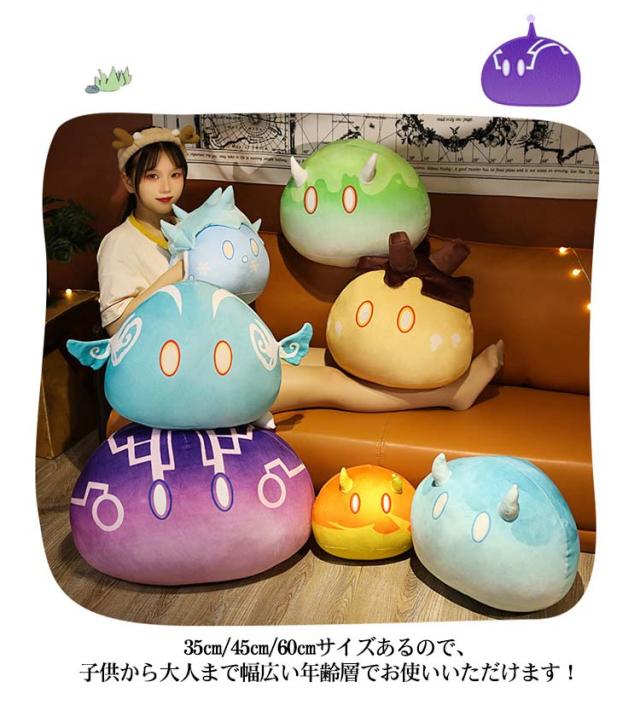 | スライムがかわいい抱き枕になりました!35cm/45cm/60cmの3サイズあります。 一度抱きついたら離れられないほどの心地よさ。もっちりとした抱き心地と、ふわふわで癒される抱きまくらです。 お部屋のワンポイント・インテリアとしてもお楽しみいただけます。 35cm/45cm/60cmサイズあるので、子供から大人まで幅広い年齢層でお使いいただけます! お誕生日やクリスマスなどのギフトにも最適です! | |