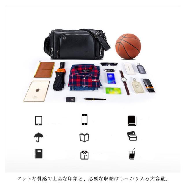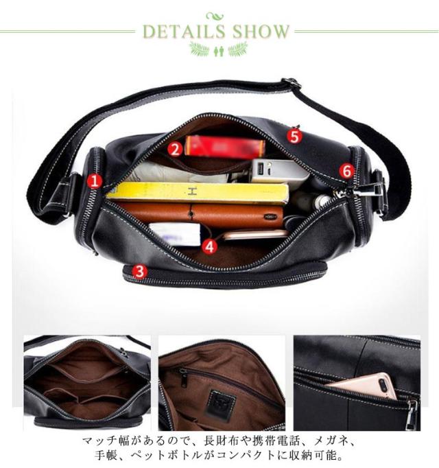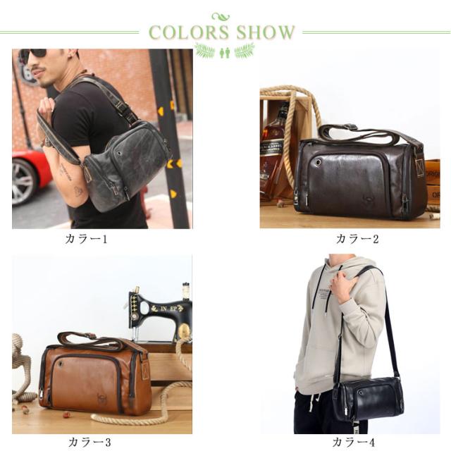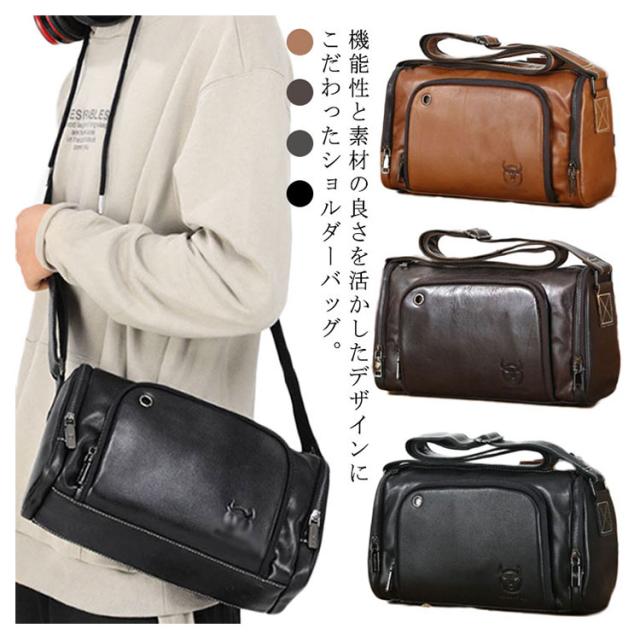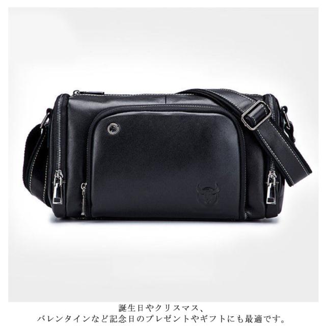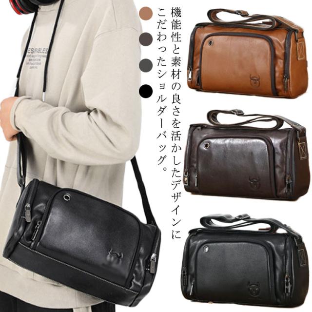 ショルダーバッグ メンズ レザーバッグ メッセンジャーバック 斜め掛け 肩掛け 牛革 皮革 大容量 機能性 ドラム型 全4色 男性用 かばん バッグ 鞄 横型 肩紐付き 斜め掛けバッグ ボディバッグ
