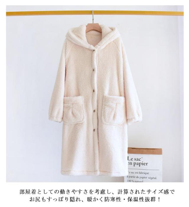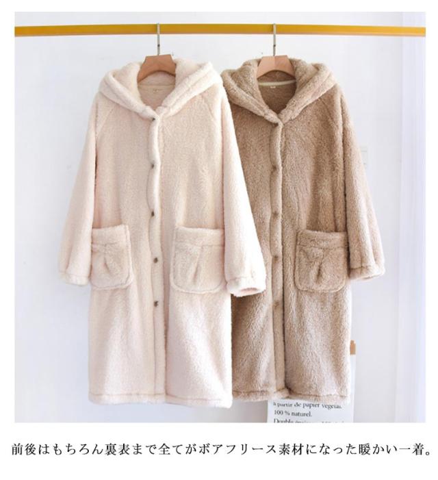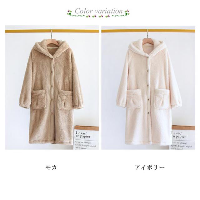 ボアフリース ロング丈 コーディガン 着る毛布 ロングガウン ルームウエア 部屋着 フード付き ガウン 前開き バスローブ 暖かい ミミ付き 秋冬