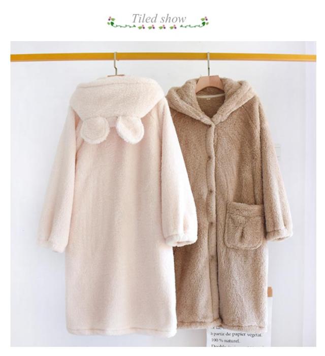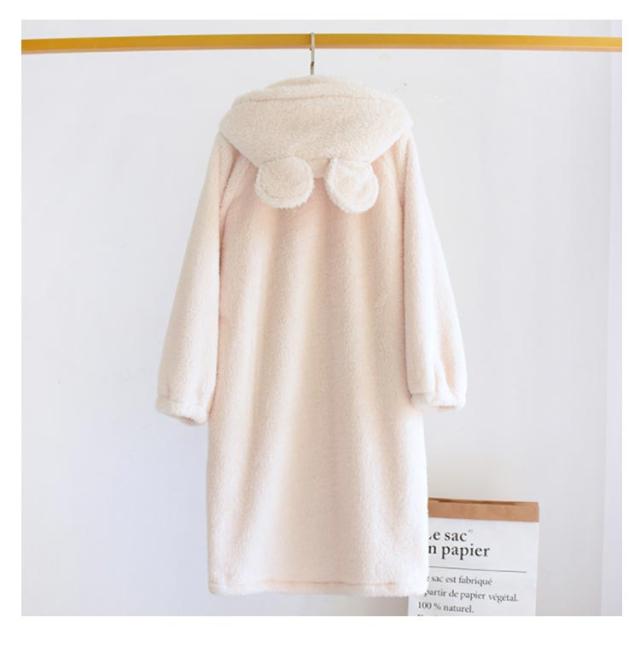 | 大人可愛い耳フード付きバスローブ。 前後はもちろん裏表まで全てがボアフリース素材になった暖かい一着。 柔らかな肌触りで毛布そのままを着ているような両面ボアフリース素材を使用しております。 部屋着としての動きやすさを考慮し、計算されたサイズ感でお尻もすっぽり隠れ、暖かく防寒性・保温性抜群! リラックスタイムに手放せなくなること間違いなしのおススメの品です。 | |