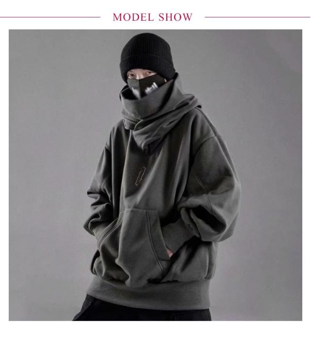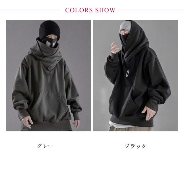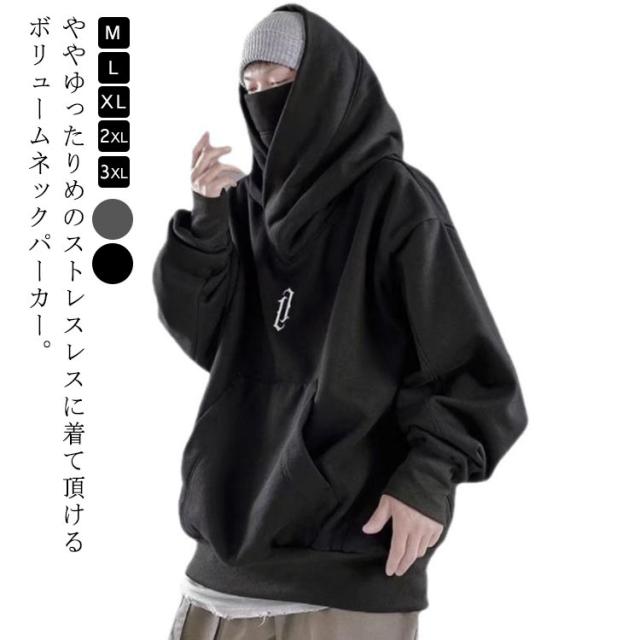 ボリュームネック パーカー メンズ レディース 長袖 春秋 ハイネックパーカー フード付きボリュームネックパーカー カットソー スウェット スエット オーバーサイズ タートルネック ハイネック 無地 ゆったり ストリート系 お兄系 個性的 モード系 原宿風