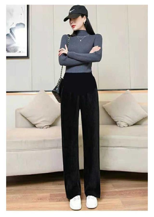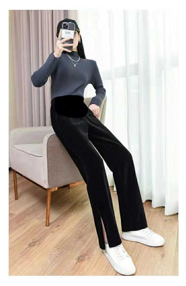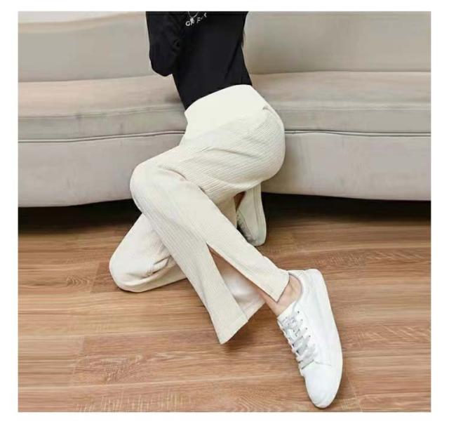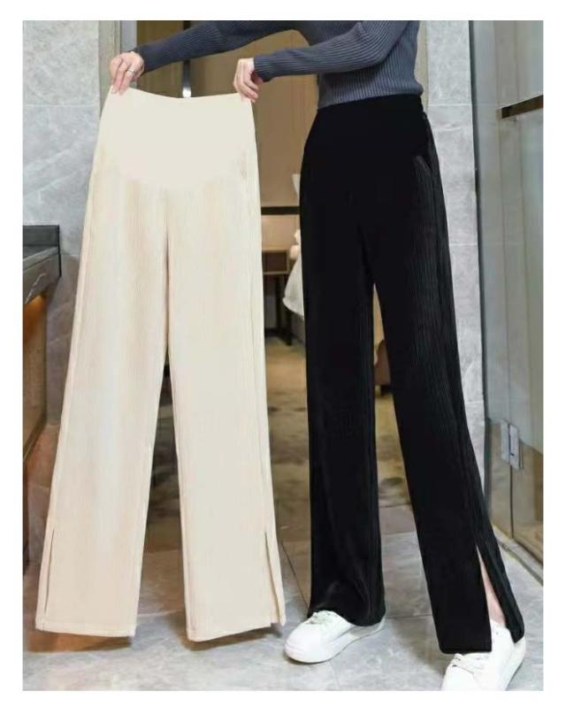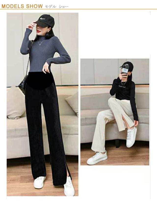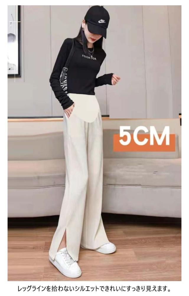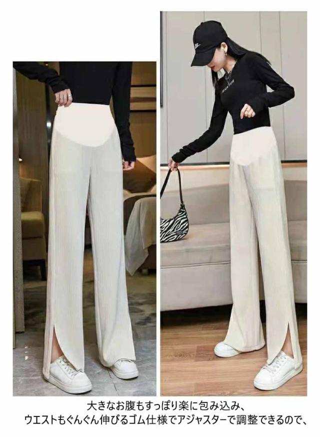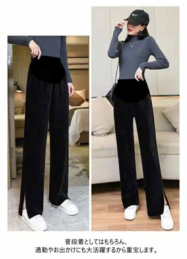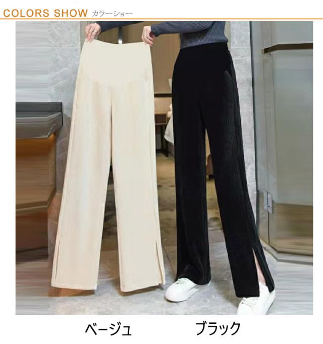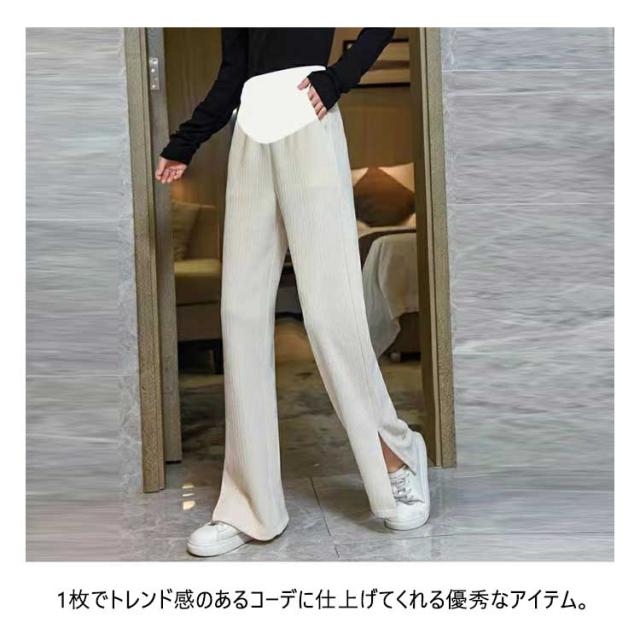 シェニール風 ワイドパンツ レディース サイドスリット入り ストレートパンツ カジュアルパンツ プリーツ マタニティ パンツ ゆったり 脚長 マタニティウェア M L XL 2XL
