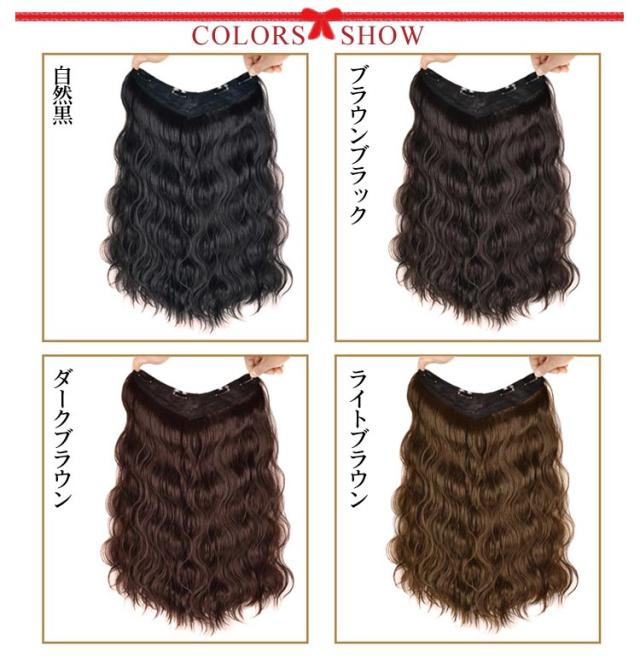 | ワンタッチクリップで10秒でボリュームが2倍アップして大変身! 耐熱180℃高品質のファーバーは自然な艶めきで地毛を馴染みやすいウィッグです。 ボリュームがあるので、なじみやすくクリップで留めるだけだから装着も簡単♪ ボリュームアップやアレンジ、イメチェンにもおすすめです。 クリップは均等に全体をカバーしているので、ずれ落ちる心配が少ないです。 ナチュラルなカラー全4色を取り揃えていますので、どんなファッションにもあう使い回しやすいアイテムです。 | |