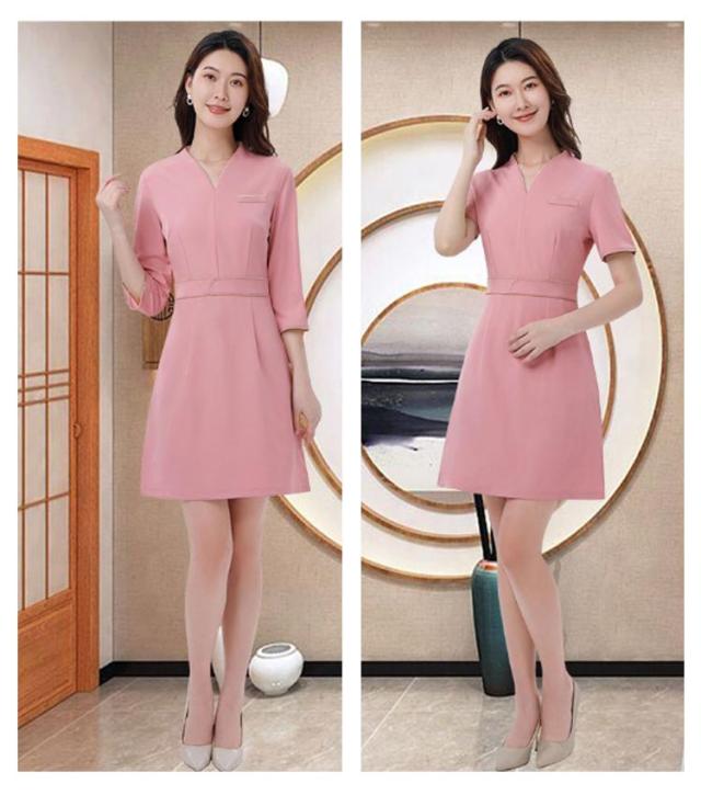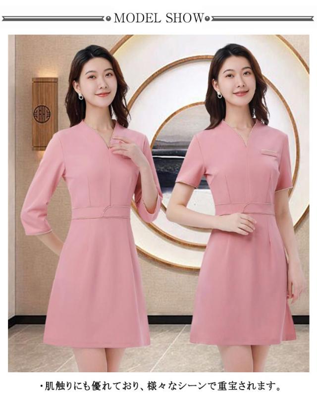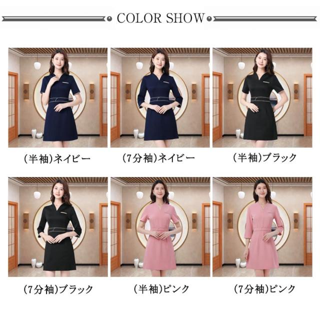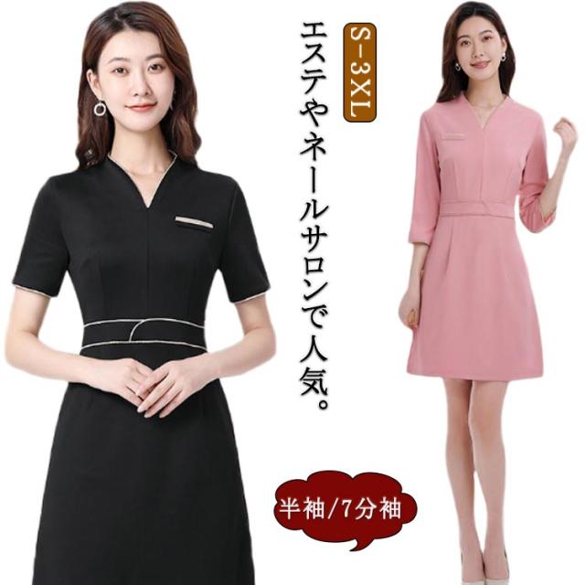 エステ ユニフォーム サロン 制服 レディース ワンピース スーツ 半袖 7分袖 吸汗 通気 ストレッチ ウェストシェイプ サロンウェア ネイル サロン クリニック 美容鍼灸 整体 マッサージ スパ 温泉 ユニホーム