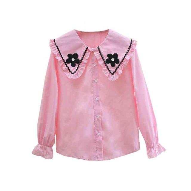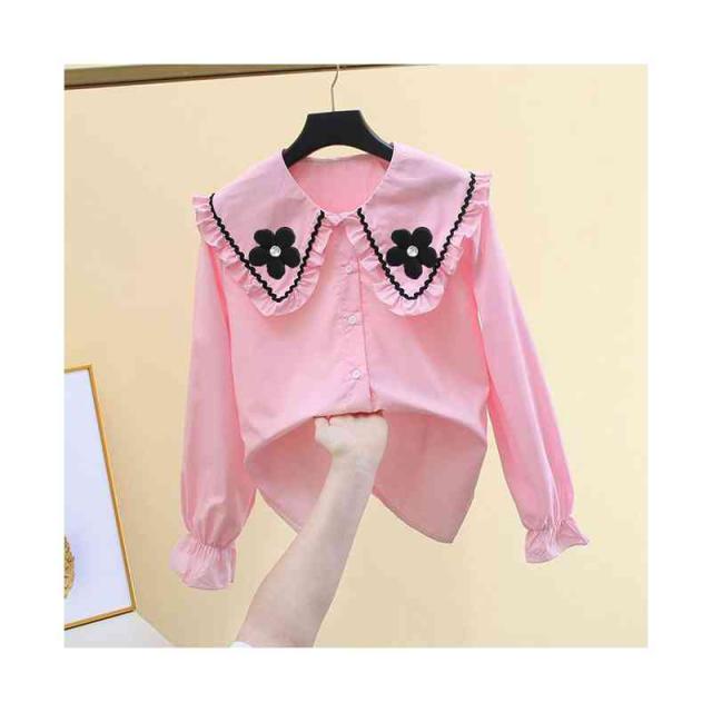 ブラウス キッズ 春秋 ゆったり インナーブラウス フリルブラウス 花柄ブラウス 長袖 子供服 おしゃれブラウス 女の子 フリルシャツ フリル 無地 お洒落 おしゃれ 可愛い お出かけ 送料無料