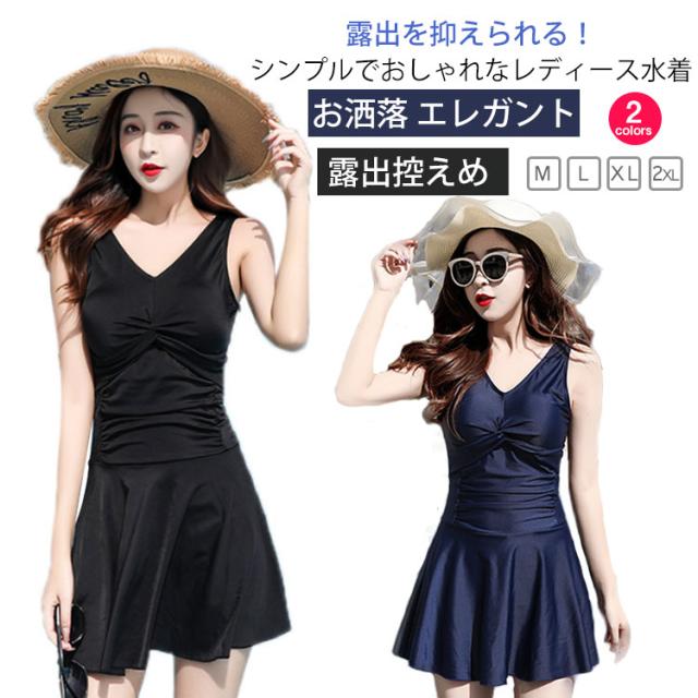 水着 ワンピース レディース 水着 無地 おしゃれ ノースリーブ 体型カバー ぽっちゃり ママ水着 30代 40代 50代 露出控えめ めくれ防止 シンプル きれいめ オールインワン お洒落 エレガント 露出控えめ 温泉 旅行 リゾート ギフト プレゼント 送料無料