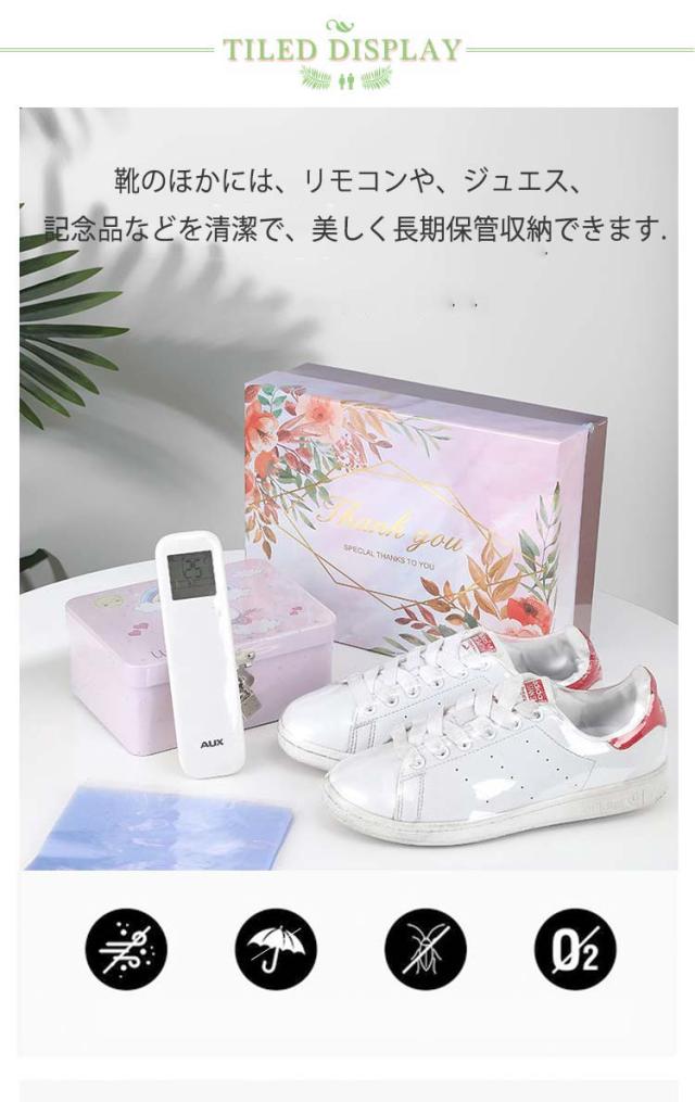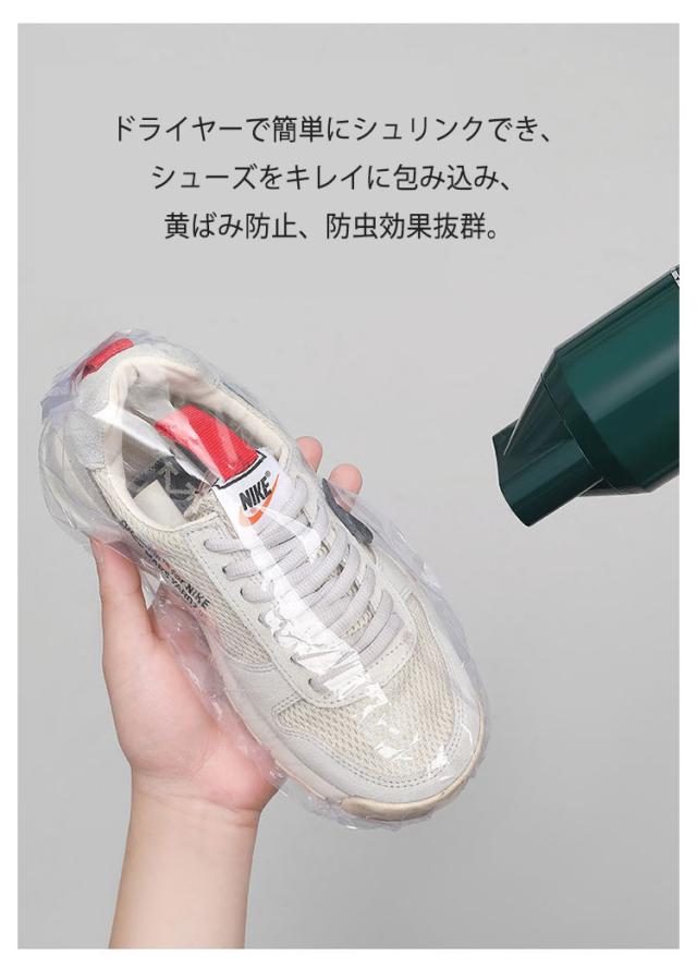 | スニーカーのコレクションなどにおススメの熱収縮袋ラッピングフィルム。 ドライヤーで簡単にシュリンクでき、シューズをキレイに包み込み、黄ばみ防止、防虫効果抜群。 透明度が高いですので、破れにくいです。ホコリや指紋の付着、湿気の対策におススメです。 お得な50枚入りです!キッズシューズから大人靴、ハイカットスニーカーなど様々なサイズの靴に適応します。 靴のほかには、リモコンや、ジュエス、記念品などを清潔で、美しく長期保管収納できます。 | |