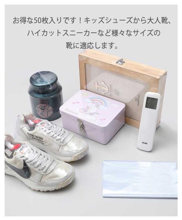 送料無料 靴収納 シュリンクフィルム スニーカー 保護フィルム 50枚セット 熱圧縮 シュリンクフィルムパック 保護カバー 圧縮袋 熱収縮 シューズバッグ 防水 防塵 防潮 シューケア 保管 収納 靴保護 酸化防止 メンズ靴 レディース靴 キッズ靴