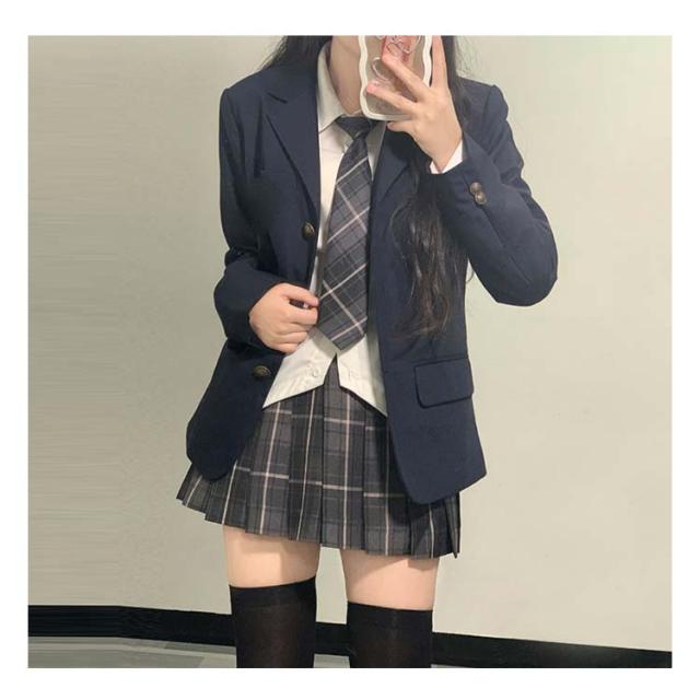| セット内容:ジャケット/スカート/シャツ/ネクタイ/バッジ。 スクールシーンに欠かせない制服5点セット。 ご家庭で手軽に洗えて、シワになりにくい素材を使用。 中学生・高校生の学生制服や行事ごと、なんちゃって制服にもおすすめです。 通学用はもちろん、入学式、学園祭、文化祭、結婚式、発表会など、フォーマルなシーンにもピッタリなスーツです。 | |