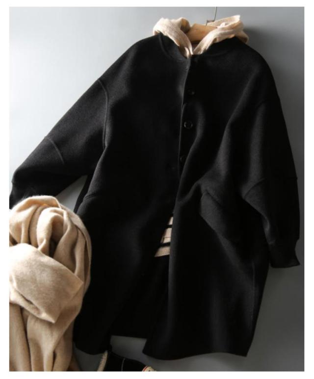 | スッキリとしたノーカラーネックラインとボリュームスリーブが大人の女性らしさを演出するコートです。 ストンと落ちるシルエットで、インナー次第で いろんなコーデを実現してくれるのでデイリーにもきれいにも使える万能アイテムです。 アームホールを広くすることで、重ね着をしてもゴワつかないよう仕立てました。 肌ざわりの良いニットメルトンに、裏地は総裏なのであたたかさも◎サイドポケット付きなのもうれしいポイント♪ ボタンをすべて閉めてもバランス良く、中に着込んでも快適な着心地を叶える一着。 長過ぎない丈は低身長さんにもおすすめです | |