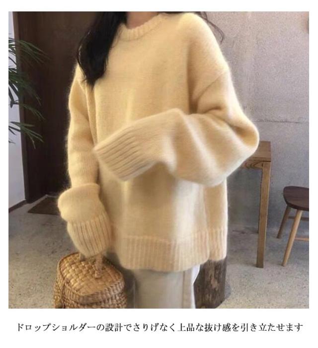 セーター レディース ニットセーター レディース 厚手ニット クルーネック セーター ウール混 秋 冬 ニットトップス ドロップショルダー レディースニット 長袖 暖かい 厚手 ニット お洒落 シンプル 無地 お洒落 暖かい 長袖 ニット セーター