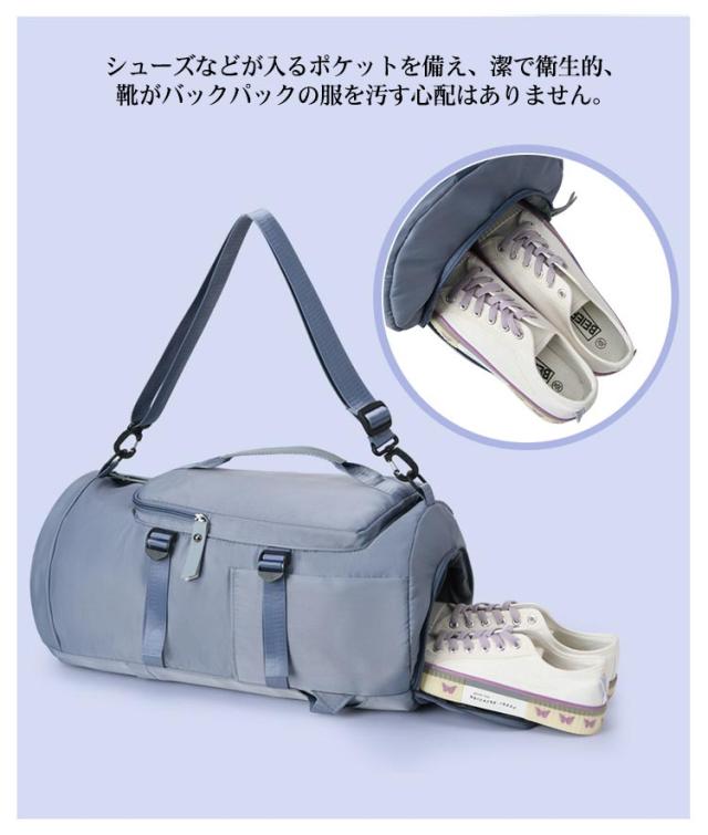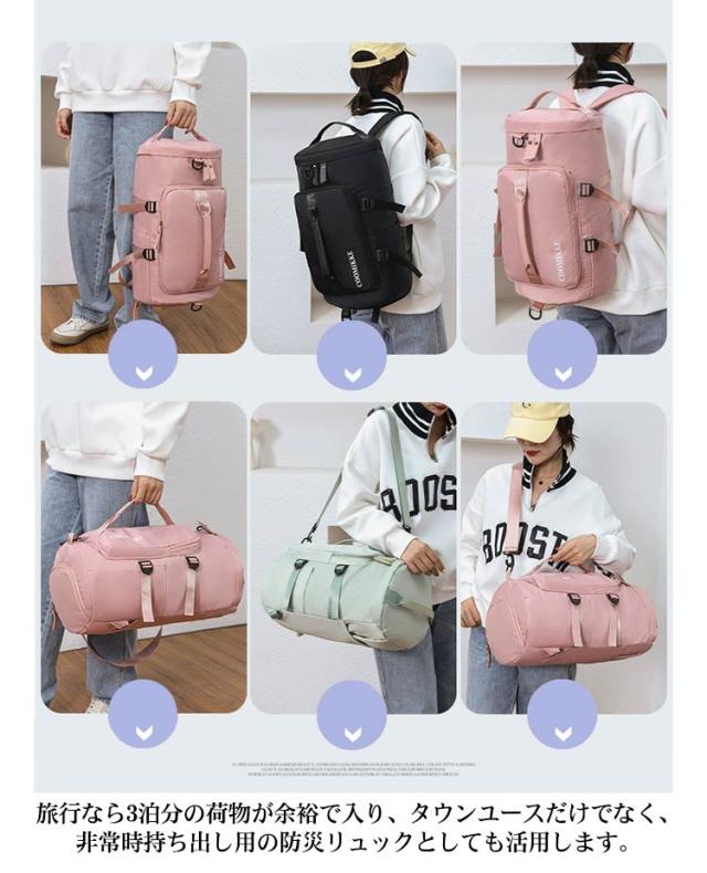 | 高級感がありながらもスポーティなデザインの3wayリュックです♪♪ 乾湿分離ポケットも増設し、簡単に乾湿衣類を分けます。 シューズなどが入るポケットを備え、潔で衛生的、靴がバックパックの服を汚す心配はありません。 リュックサックとしても、ボストンバッグとしても、ショルダーバッグとしても使用できます。 大容量でジム通いなどのスポーツシーンや旅行などに活躍します。 旅行なら3泊分の荷物が余裕で入り、タウンユースだけでなく、非常時持ち出し用の防災リュックとしても活用します。 丈夫で撥水性の高密度オックスフォード布を使用し、引っ張りや摩擦に強い、高い耐久性を実現しました。 | |
