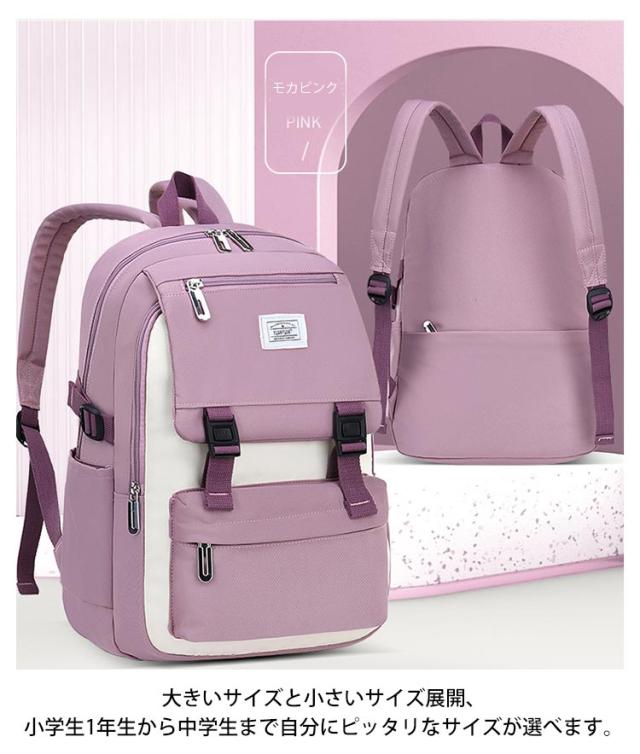 | トレンドのくすみカラーがおしゃれ♪ シンプルなデザインなので、ユニセックスにお使いいただけます。 荷物がたくさん入る大容量、普段の通学はもちろん、旅行など時も活躍できます。 前ポケット、メインポケット、サブポケット、サイドポケット、背面盗難防止ポケットなどポケットいっぱいで、整理が苦手な子も便利。 無地シンプルなデザイン、コーディネートの邪魔をしないから、いつでもおしゃれにご利用いただけます。 表面はしっかりした撥水加工が施され、雨の日も安心。 大きいサイズと小さいサイズ展開、小学生1年生から中学生まで自分にピッタリなサイズが選べます。 | |