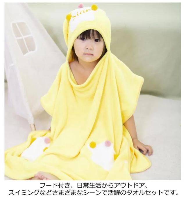 | 湯冷めから守り、忙しいお風呂上がりに大活躍のフード付き子供用バスローブ。 着た時にふわふわ柔らかな気持ちの良い優しい肌触りが楽しめます。 フード付き、日常生活からアウトドア、スイミングなどさまざまなシーンで活躍のタオルセットです。 | |