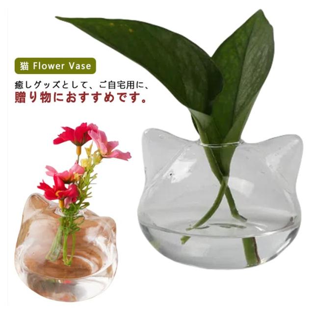 ねこ 猫 プレゼント 花瓶 フラワーベース 小さい 一輪挿し ガラス 花器 猫型 おしゃれ 涼しい 涼しげ おそろい 雑貨 猫グッズ ねこ雑貨 ラッピング インテリア 母 かわいい 贈り物 花 お誕生日 猫の日 猫雑貨