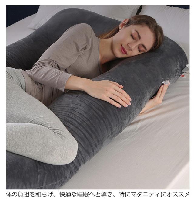 | 優しくカラダを包み込むU型抱き枕。 背中を支えながら頭から足まで包み込み、体にしっかりとフィット。 体の負担を和らげ、快適な睡眠へと導き、特にマタニティにオススメ。 横向きで抱きつきながらの就寝はもちろん、仰向け、うつ伏せでもお使いいただけます。 抱き枕に腕と片足を乗せることで、敷布団にのみに掛かっていた体圧を抱き枕にも分散します。 お腹、背中、腰など妊婦さんが負担に感じる部分をしっかりと支え、楽な体勢をキープできます。 就寝時はもちろんのこと、リラックスタイムの背もたれにもぴったりです。 出産後は授乳クッションとしてもお使いいただけます。 カバーは取り外して洗濯可能で便利。 | |
