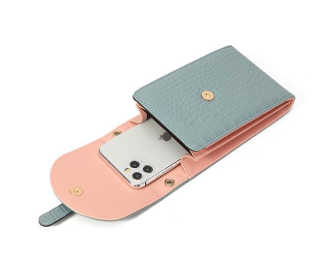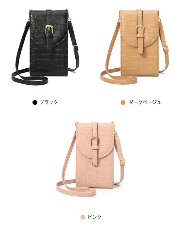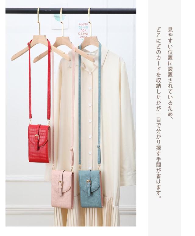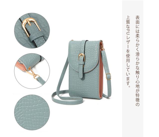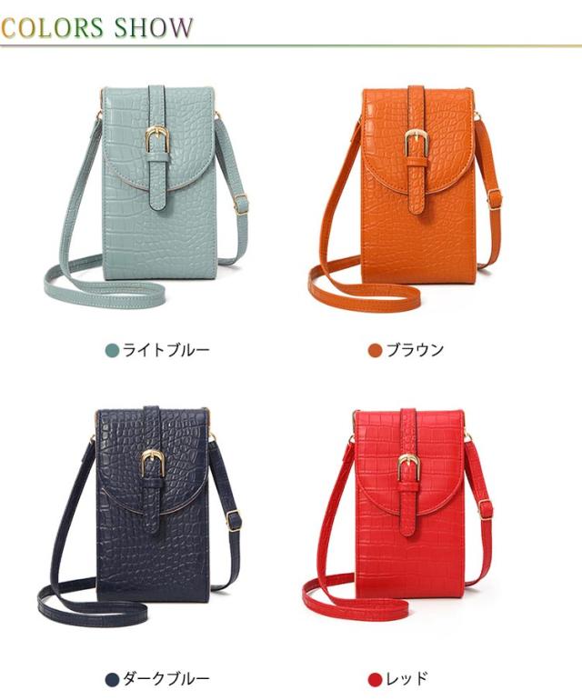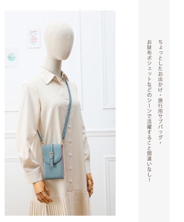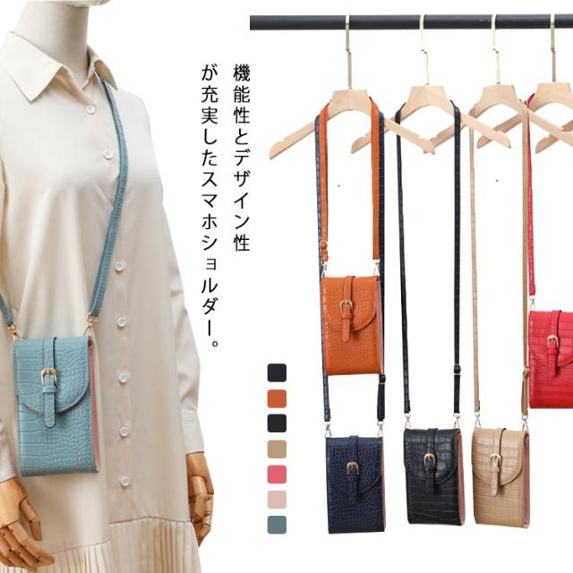 スマホポーチ スマホショルダー レディース 斜めがけ スマホポシェット 縦型 カード入れ バイカラー クロコ柄 デザイン 携帯バッグ 薄型 軽量 コンパクト 肩掛け iPhone マルチポーチ 便利
