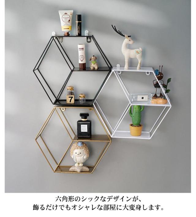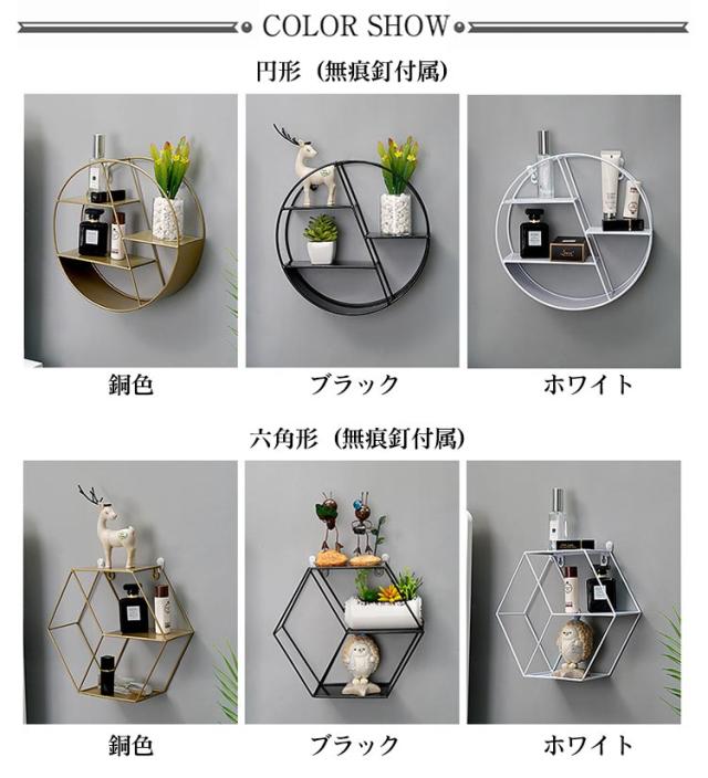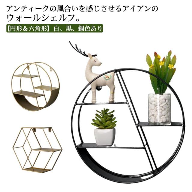 ウォールシェルフ ラック 白 黒 ウォールラック 3段 円形 丸 アイアン 壁掛け 棚 賃貸 取り付け 壁面収納 ラック 六角形 ウォールディスプレイ 飾り棚 壁飾り 洗面所 トイレ リビング インテリア モダン 北欧 おしゃれ