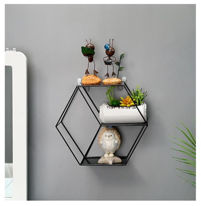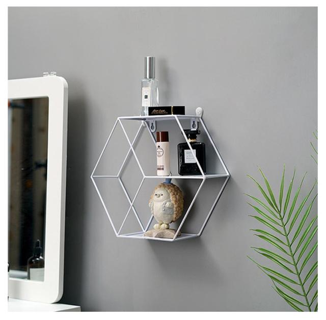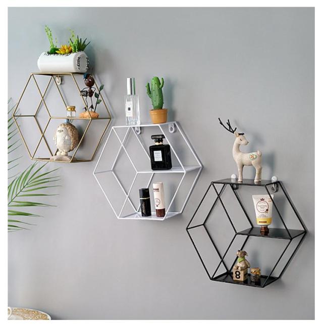 | アンティークの風合いを感じさせるアイアンのウォールシェルフ。【円形&六角形】白、黒、銅色あり。 六角形のシックなデザインが、飾るだけでもオシャレな部屋に大変身します。 3段タイプのウォールラック、飾りと実用的な収納を兼ね備えています。 奥行があるので、思い出の写真や、雑貨を飾ったり、CD、調味料や洗剤などを収納したり使い方色々です。 リビングやベッドルームの飾り棚としてはもちろん、キッチンではスパイス置きにしたり、洗面所の収納棚にしたり、飾りや収納を楽しみながら壁面のスペースを有効活用できます。 壁にネジ止めし、取り付けていただく形になります。(付属の無痕釘を使用すれば跡が目立ちません。賃貸で取り付けも可能です。) | |
