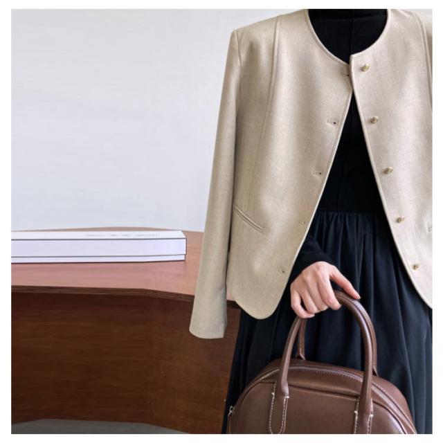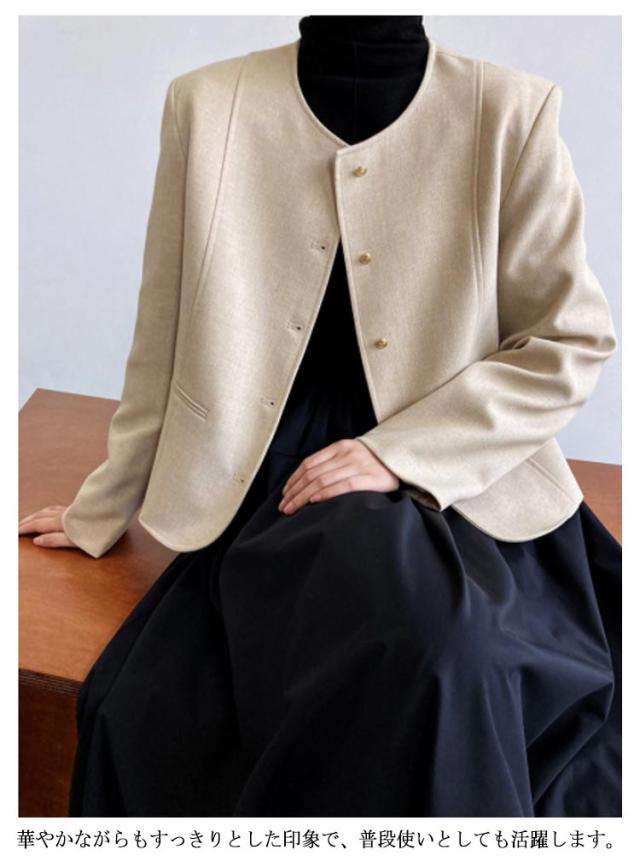 | 入学・入園・七五三などのママスタイルのコーディネートに大活躍。 フェミニンな仕立てのノーカラージャケット 華やかなフォーマルシーンからセレモニースタイルまで幅広く着用できます。 いつもの服装をほんの少しだけ華やかなものへ導きます。 華やかながらもすっきりとした印象で、普段使いとしても活躍します。 | |
