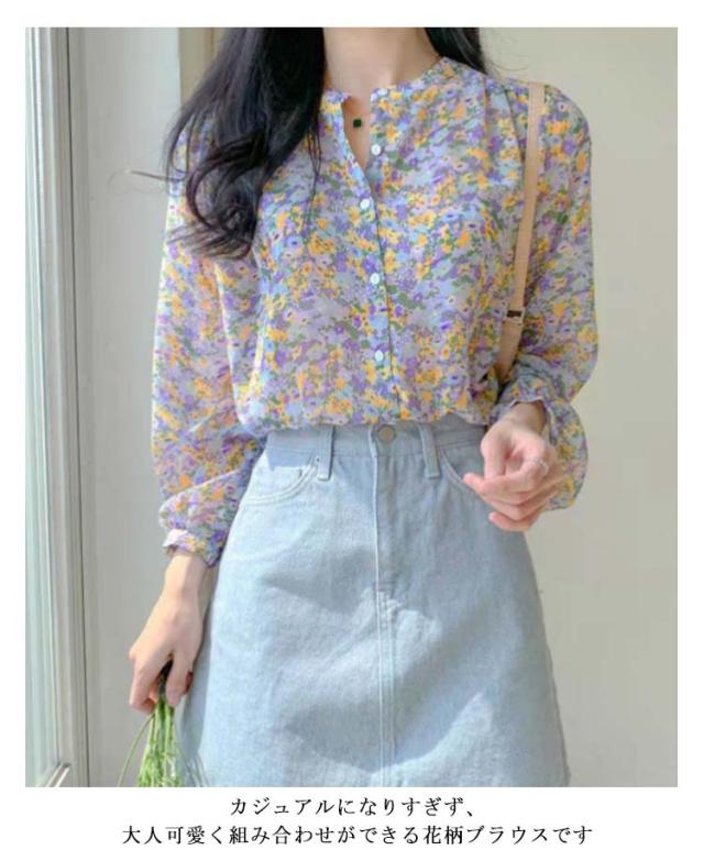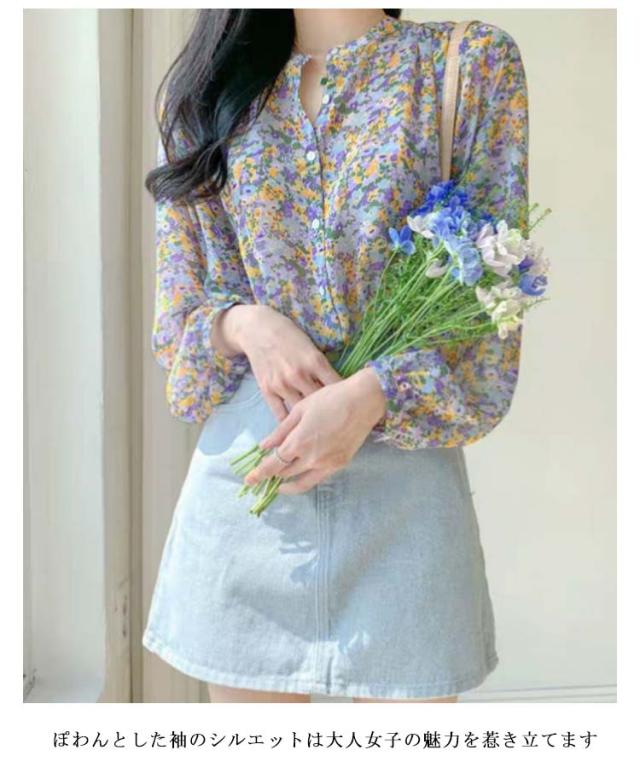 | 女性らしい花柄デザインのシフォンブラウス シフォン生地は通気性が良く、さわやかで快適な感じを与えて さらっと着られる滑らかな肌触りは季節の変わり目にぴったり。 ぽわんとした袖のシルエットは大人女子の魅力を惹き立てます カジュアルになりすぎず、大人可愛く組み合わせができる花柄ブラウスです | |