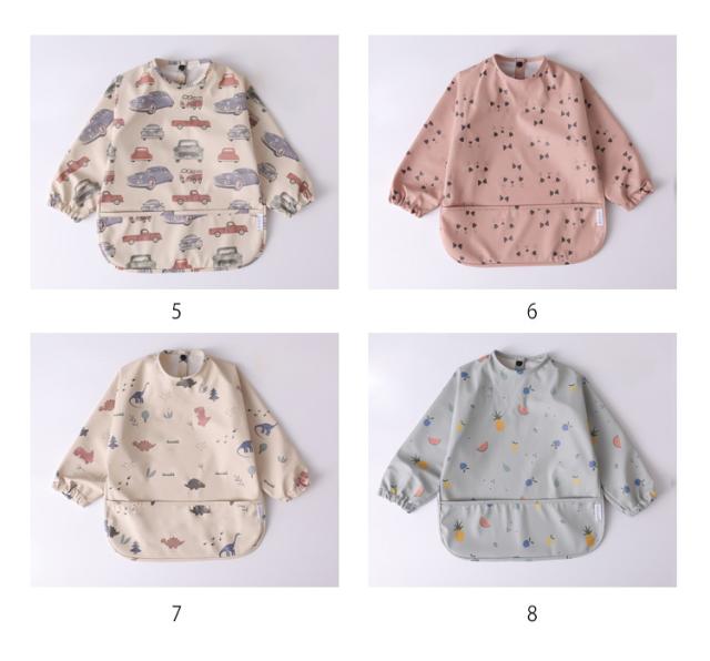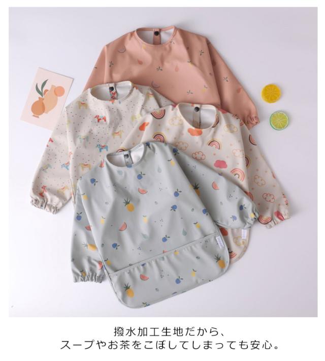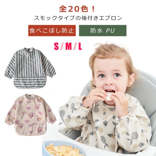 お食事エプロン ベビー 食事エプロン 食べこぼし防止 長袖 スモック 食事用エプロン 防水 PU お食事スタイ 離乳食 保育園 お食事用エプロン 赤ちゃん 入園準備 エプロン ポケット付き 洗濯可 ベビースモック 女の子 男の子 出産祝い 大きめサイズ ギフト 送料無料
