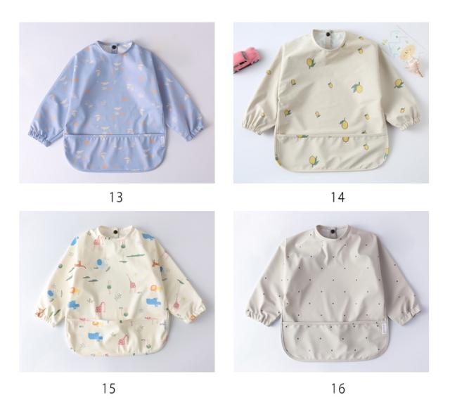 | 全20色!スモックタイプの袖付きエプロン 撥水加工生地だから、スープやお茶をこぼしてしまっても安心。 軽くて柔らかなPUレザー素材だから、硬い素材のエプロンを嫌がる子にもぴったり。 フロント部分にはポケットがついており、食べこぼしをしっかりキャッチしてくれます。 袖口にはゴムが入っており、袖口から汁物が伝って服が汚れる心配がありません。 小さくたためるので、持ち歩き用や保育園用としてもおすすめです。 洗濯機で丸洗いでき、お手入れもラクラクです。 | |
