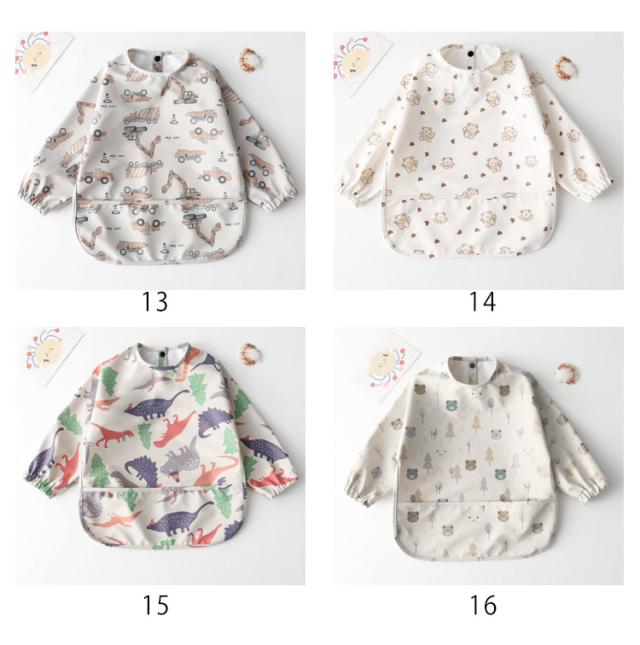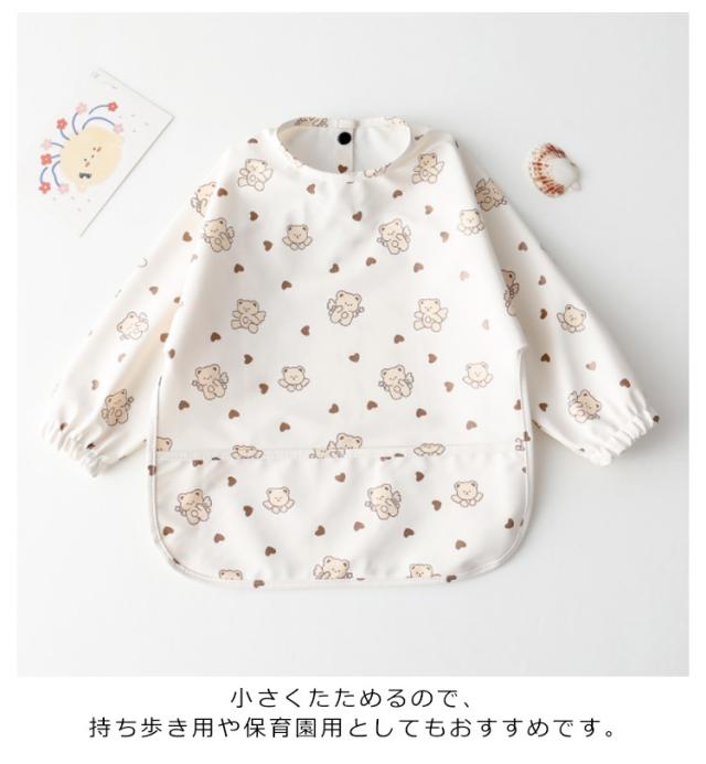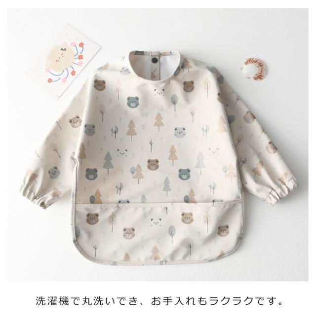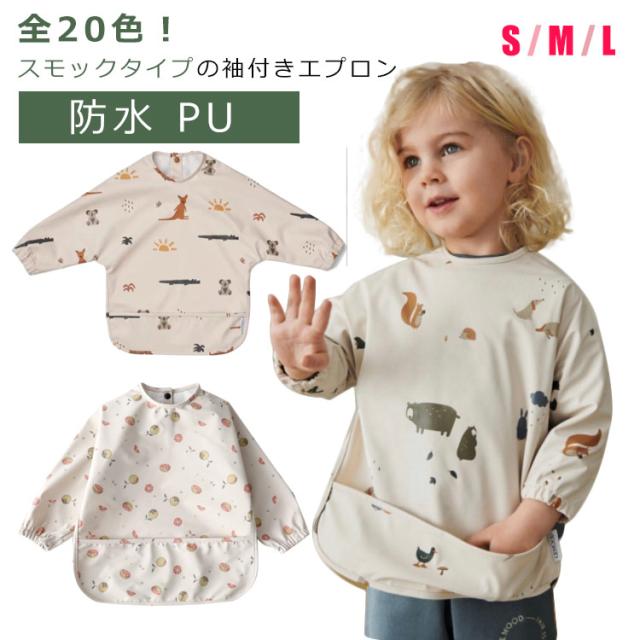お食事エプロン ベビー 食事用エプロン 長袖 スモック 食べこぼしガード 防水 PU お食事スタイ 離乳食 保育園 お食事用エプロン 赤ちゃん 入園準備 エプロン ポケット付き 洗濯可 ベビースモック 女の子 男の子 出産祝い 大きめサイズ ギフト 送料無料