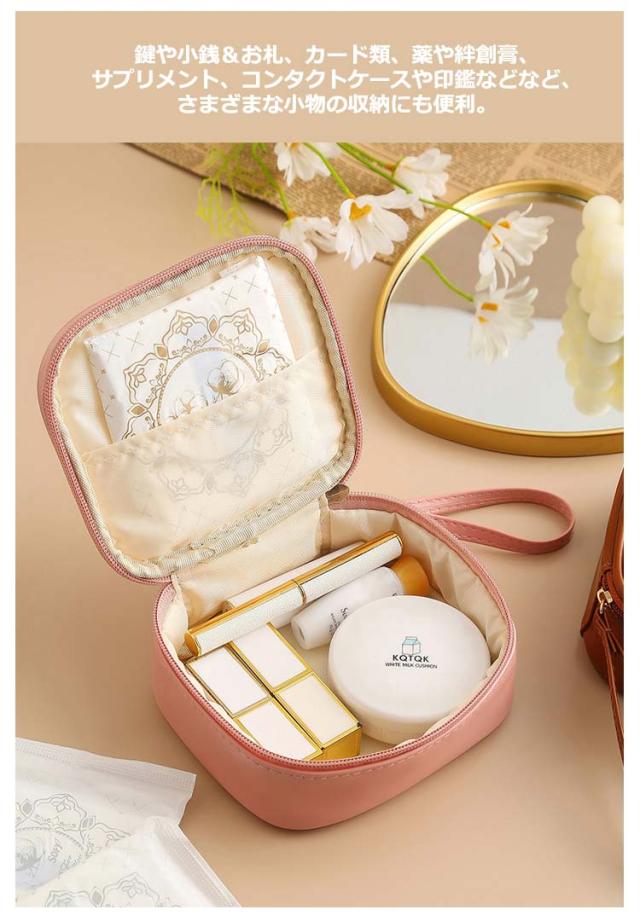 | ふんわりカラーが可愛い実用性も兼ね備えた優秀ミニポーチ。 メインルームはコの字に大きく開くラウンドファスナーで、中身が見やすく取り出しやすい◎ バッグに入れてもちょうどいいコンパクトサイズ! 軽くて丈夫なPU素材ですので、汚れてもさっと拭くだけ。 メイク道具や小物類、サニタリー用品などの小物をまとめて収納。 コスメポーチ、サニタリーポーチなど、使い方は自分次第。 | |