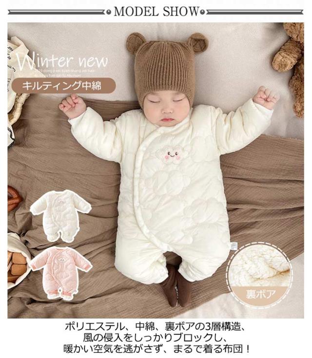 ベビー服 ジャンプスーツ キルティング中綿 裏ボア ボアコート 防寒 カバーオール ロンパース オールインワン アウター ベビー キッズ 子供服 軽量 男の子 女の子 スナップボタン 長袖 あったか 冬服 新生児 韓国 可愛い 秋冬服