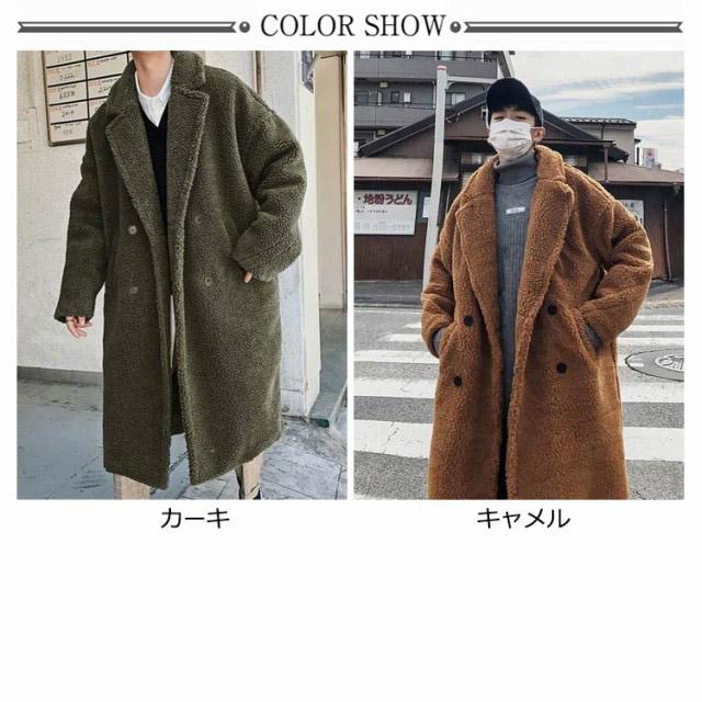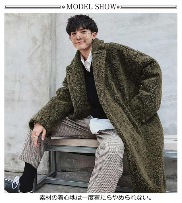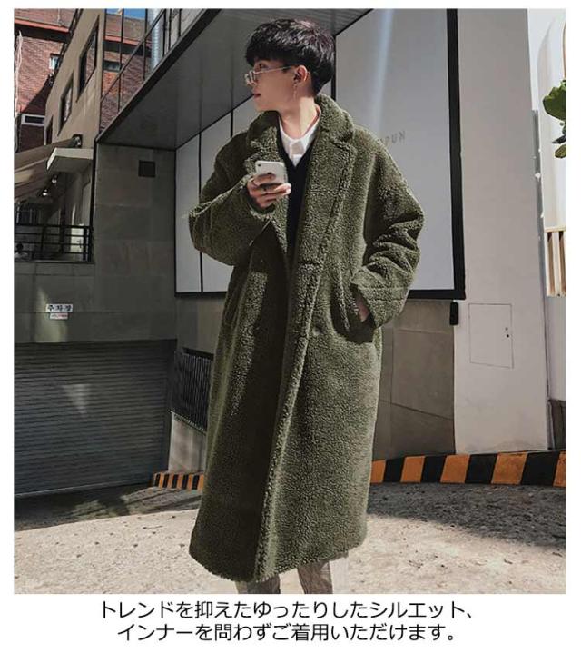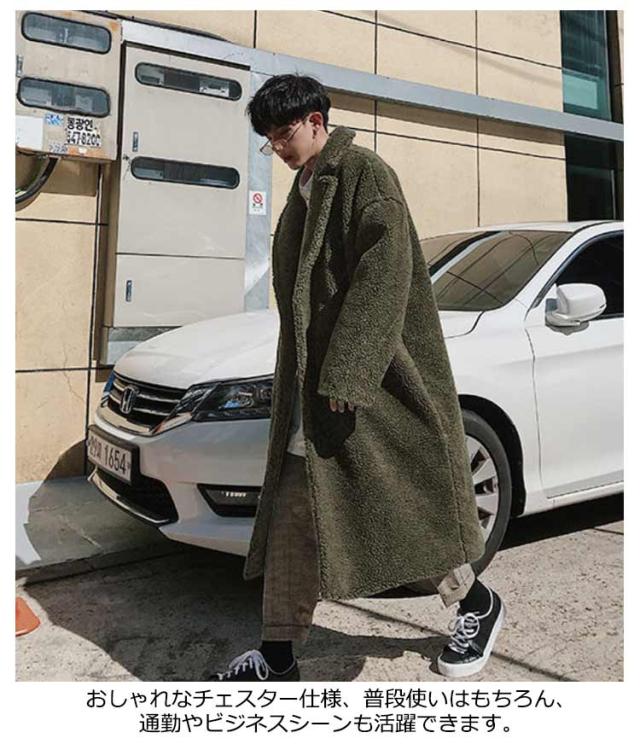 ボアコート ファーコート メンズ ロングコート チェスターコート ムートンコート フェイクファー 厚手 ボアフリース オーバーサイズ ドロップショルダー アウター もこもこ 韓国 ファッション ボアジャケット 誕生日 プレゼント 20代30代40代 秋冬服